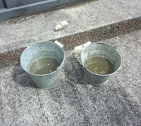 バケツの水もこんなに緑色になってます。