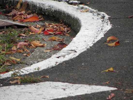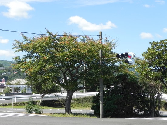 信号交差点の桜の葉も少しずつ赤くなっています。