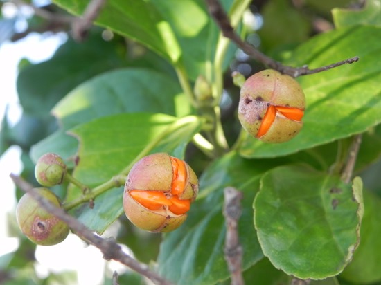 場内コースの見通しの悪い交差点用の目隠しに使用している「マサキ」に実が生っていました。