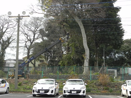 別府校の西側にある空き地に大きな木が数本立っています。