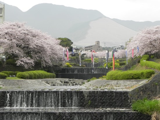 別府市のウェブページではぼたん桜と紹介されていますが、ぼたん桜と云うのは正式な呼び方ではないようで図鑑などを調べても出て来ません。八重桜や里桜と呼ばれる桜の仲間のようです。