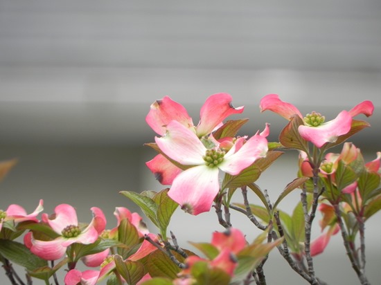 この道路のハナミズキは白い花の咲く木の方が多いようです。