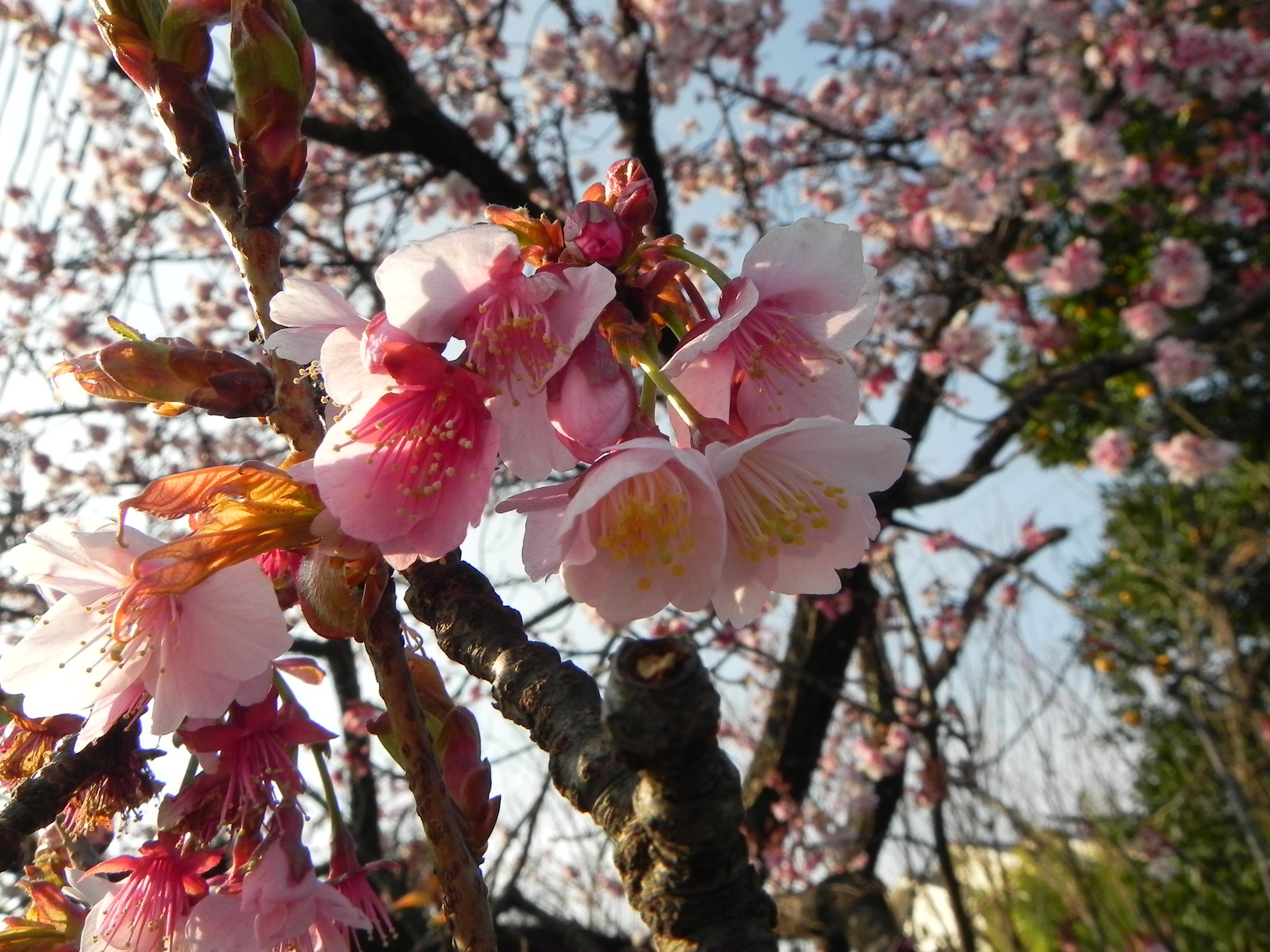 河津桜は寒緋桜と早咲きの大島桜が自然交配したものだそうで比較的新しい品種のようです。大分県では津久見の河津桜が有名ですね?