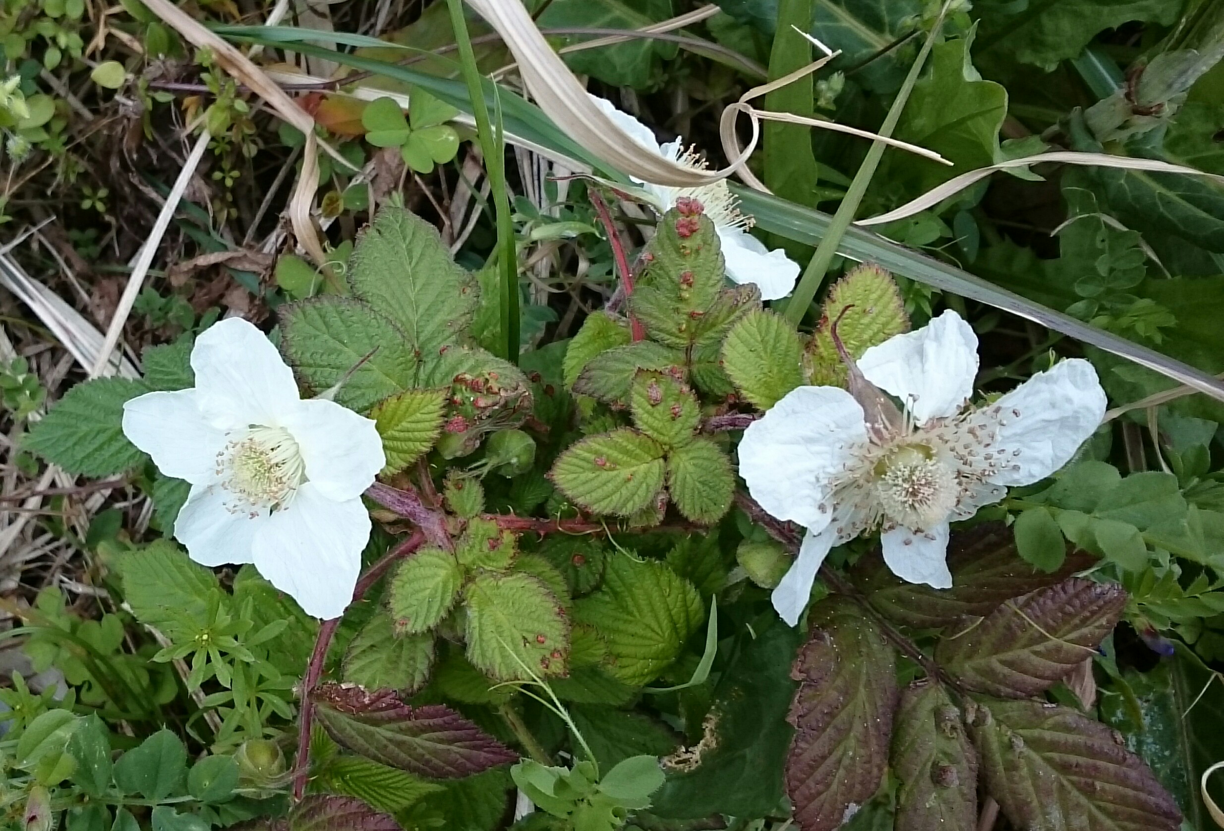 別府校の職員駐車場(二輪コースの更に奥です)の隅に咲いている木苺(野苺)の花です。毎年、この季節になると白い花が目立ちます。ゴールデンウィークの頃には赤い実がたくさんつきますが、茎に棘があるので実を摘む時は注意が必要です。