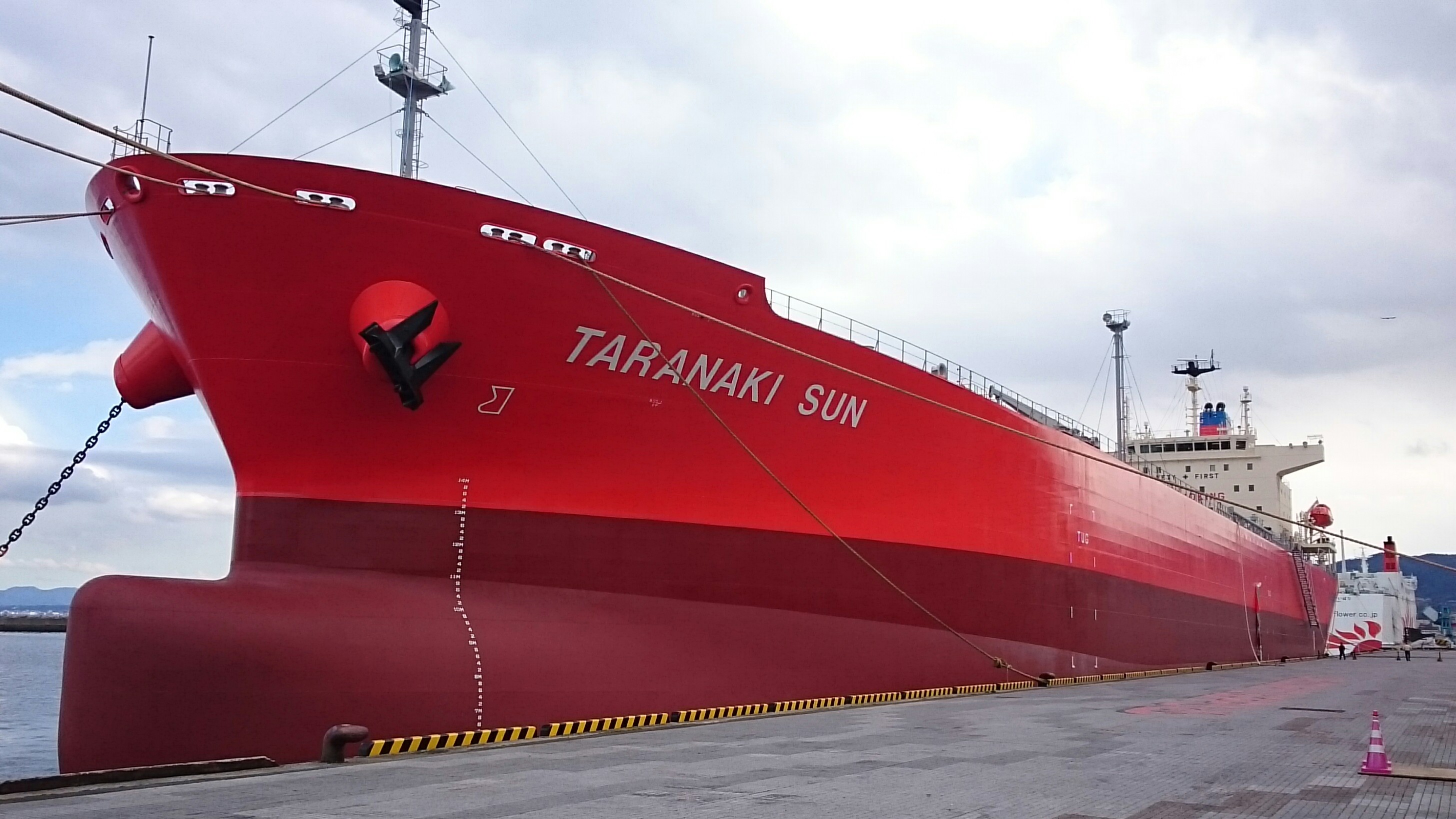 昨日の8限は路上教習でした。10号線を九州横断道路に向かって進んでいると、観光港に停泊している「TARANAKI SUN」が見えました。
