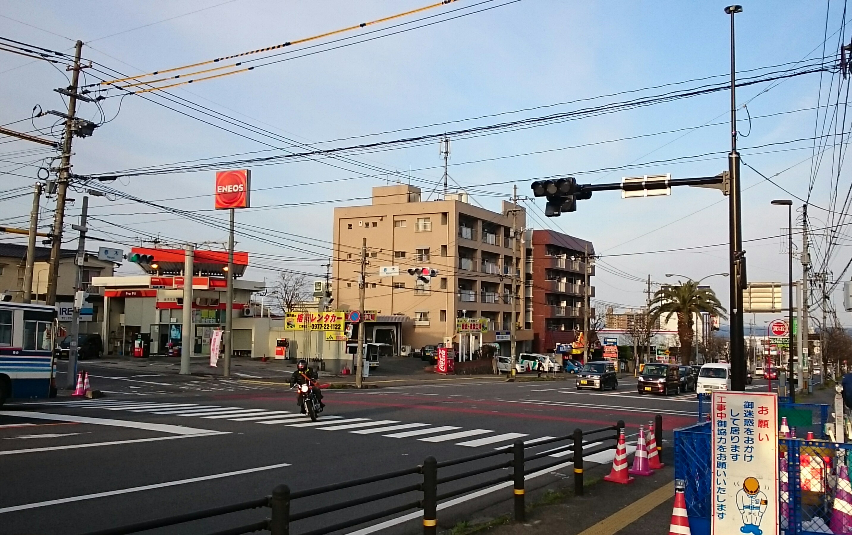 本日の九州横断道路・春木交差点です。いつもと変わらない風景に見えますが、昨日迄あった歩道橋が撤去されています。気がつきましたか?