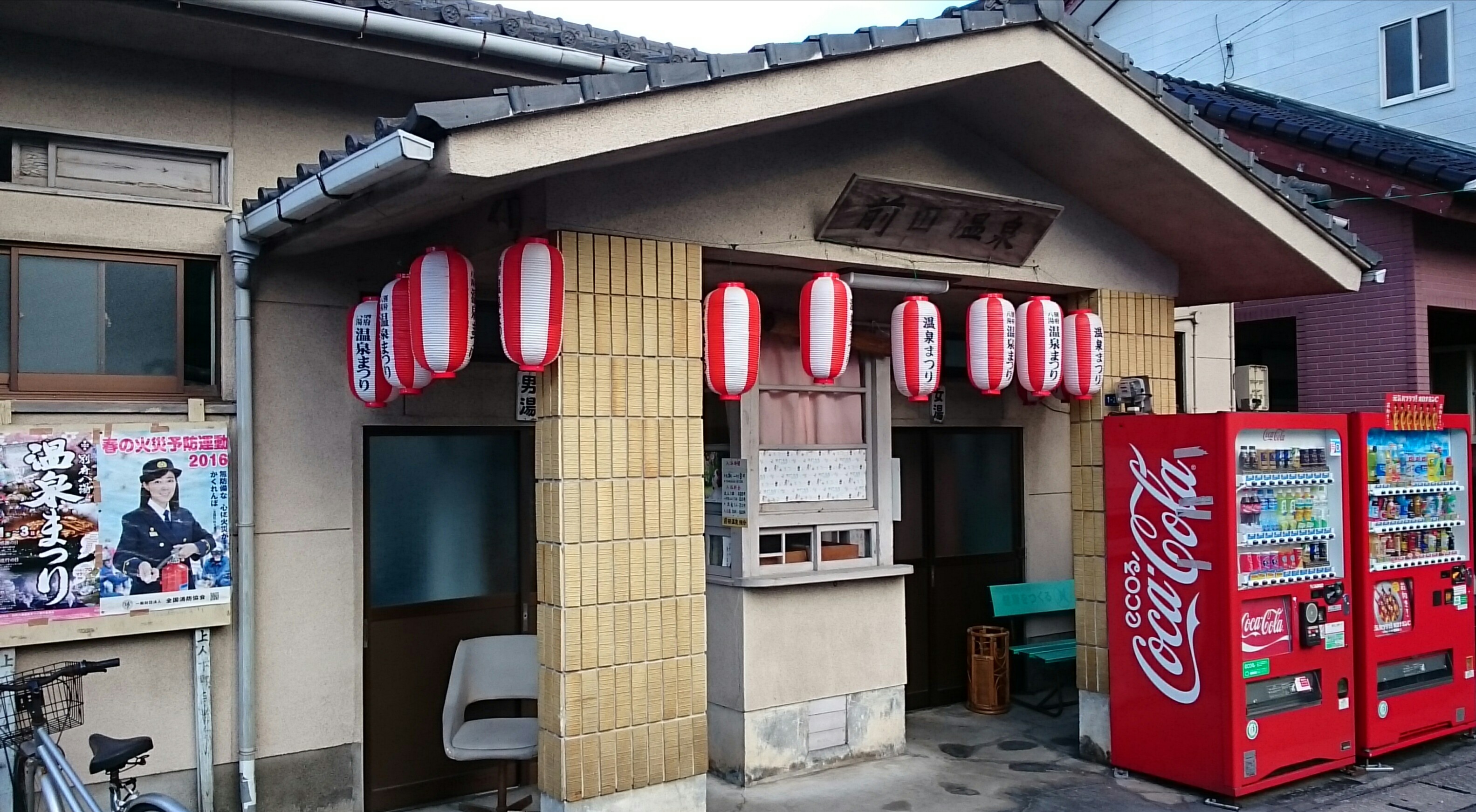 別府校に一番近い前田温泉(市有区営温泉)にも、温泉まつりの提灯が取り付けられていました。