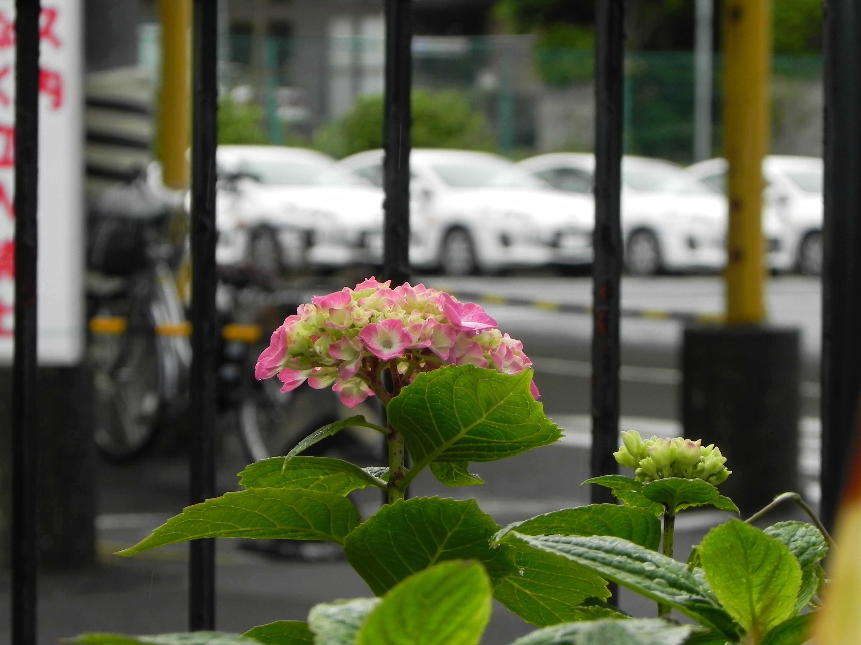 正門横のアジサイが咲きました。