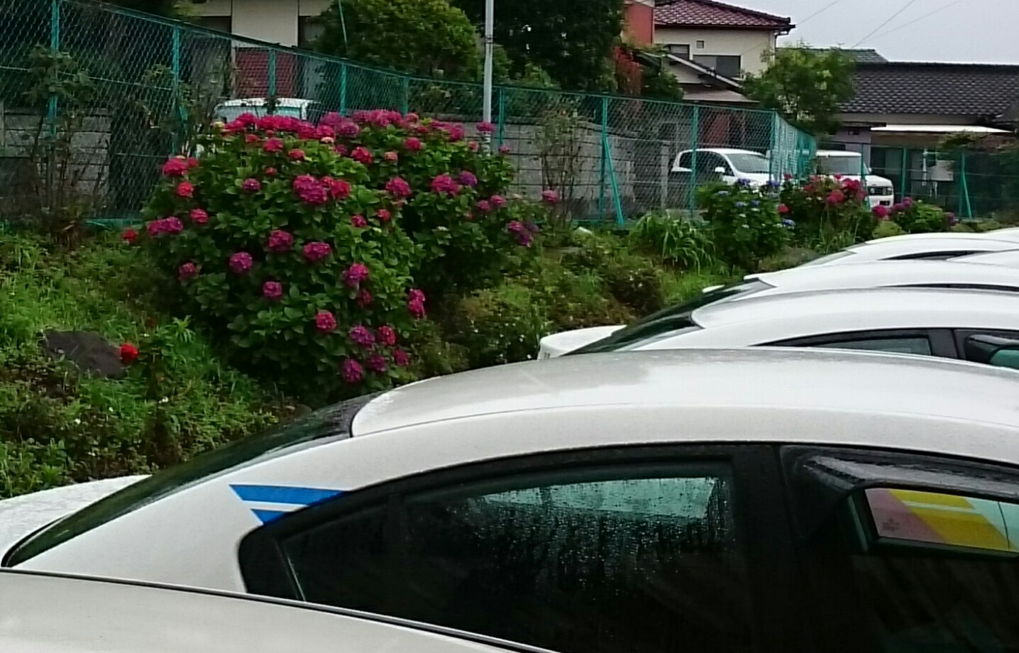 別府校にはアジサイがたくさんあります。今朝、数えて見たら20株もありました。20年前は2株でしたから10倍に増えています。増田自動車のUさんから頂いたものがほとんどですが、私が挿し木で増やした株もあります。挿し木と言っても剪定した枝を適当に切って挿しているだけですから失敗が多いけど、今も続けているのでもっと増えていくはずです?
