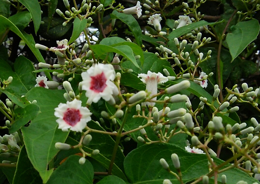 見た目は可愛らしい花ですが「ヘクソカズラ」と云う名前です。悪臭がするので、このような名前がついたそうです。