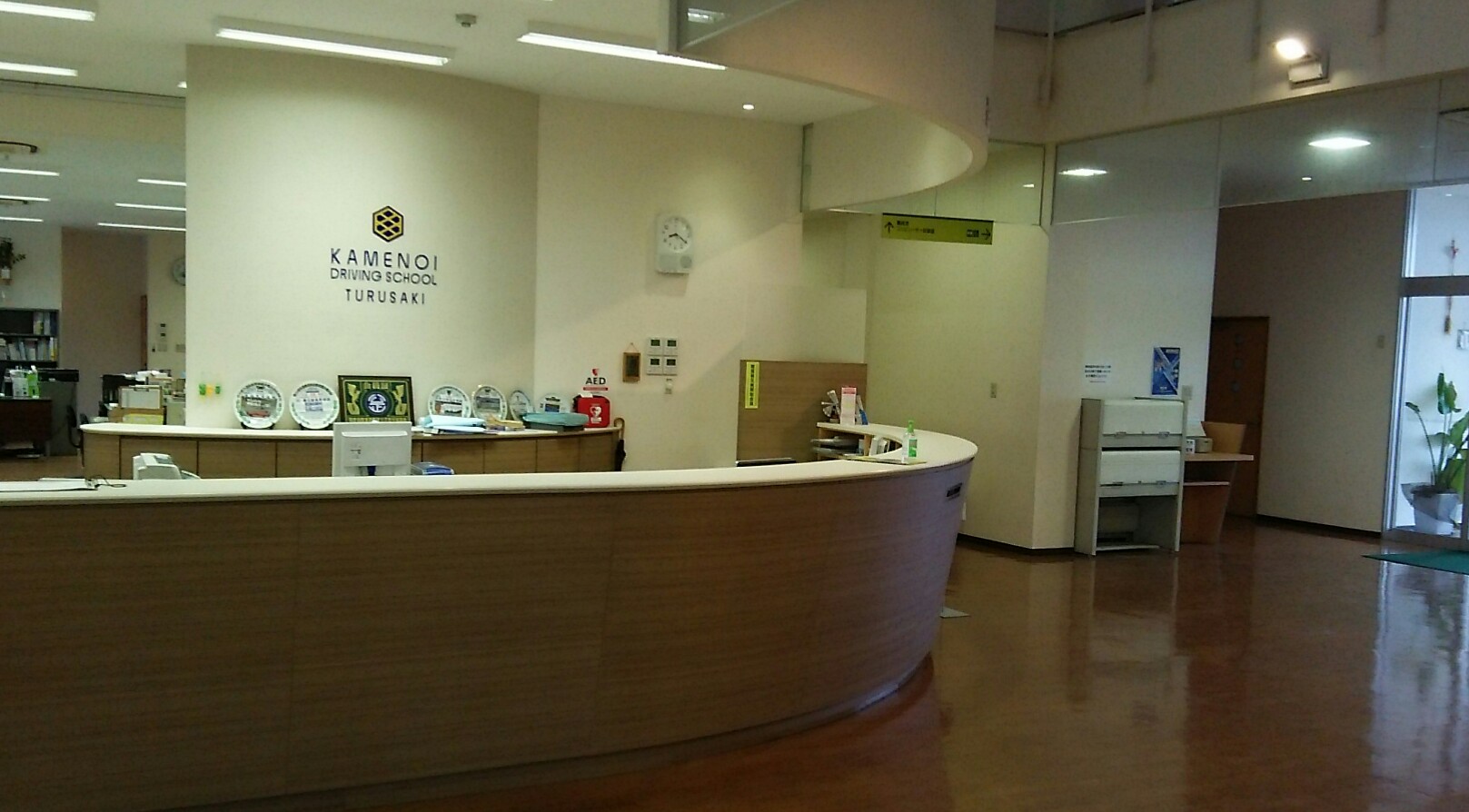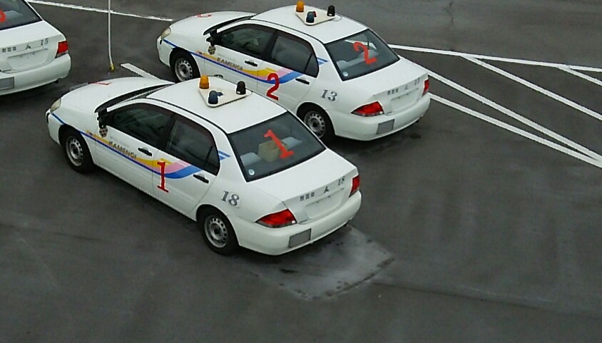本日の会場は鶴崎校です。鶴崎校と云えば、1Fロビーに置かれたフォードT型です。受付カウンターもご覧の通りです。別府校も早く建て替えて欲しいものです鶴崎校は、先日、阿蘇山が噴火した時にかなり降灰があったそうで、コースの路面にはその痕が残っていました。