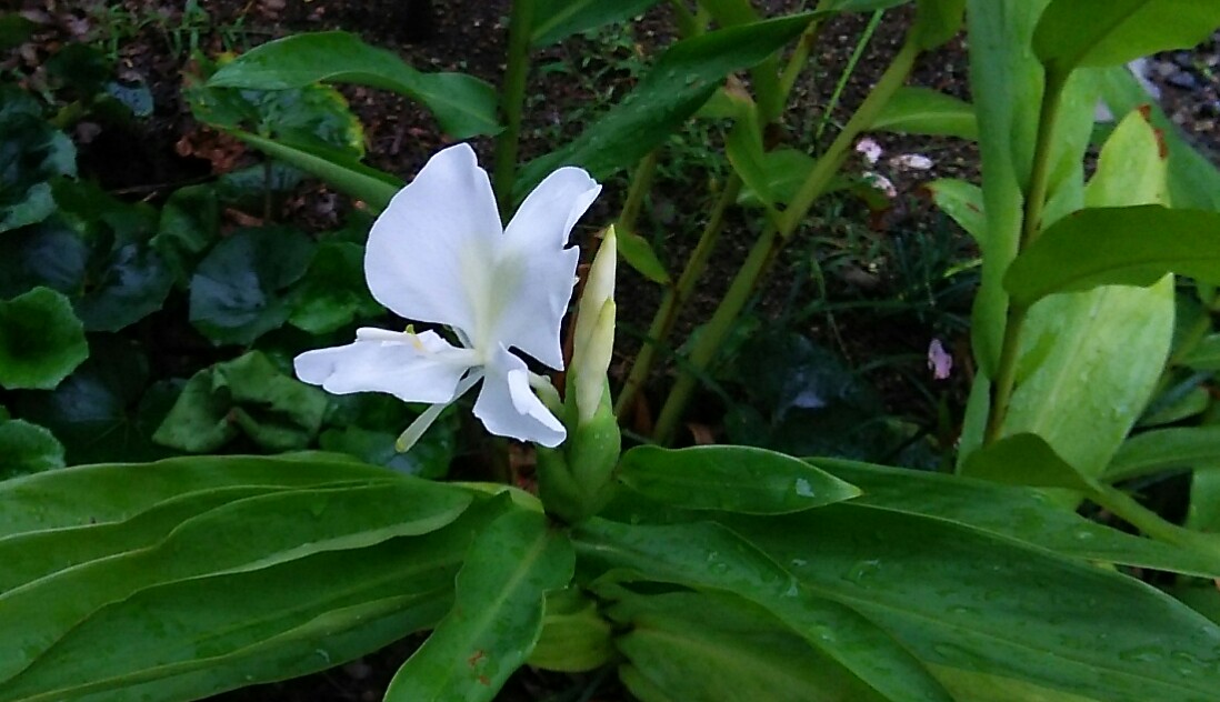 庭に咲いた「ジンジャー」です。ジンジャーと云っても食用の生姜ではありません。生姜の親戚にはなるようですが、園芸種で「シュクシャ」とも呼ばれることもあるそうです。甘くて良い香りがしています。