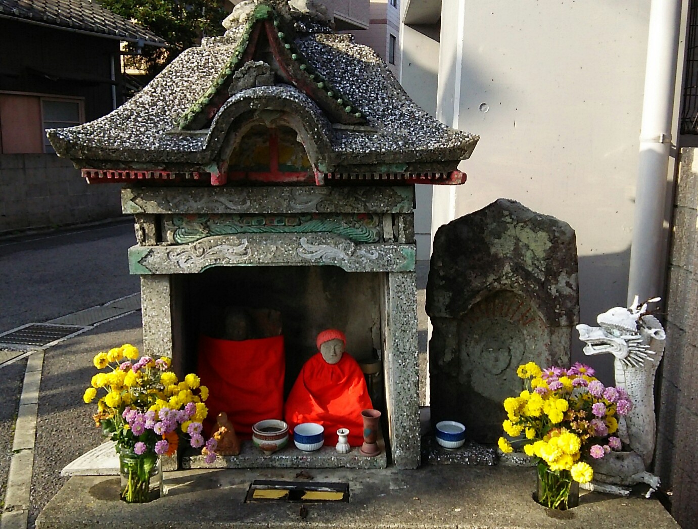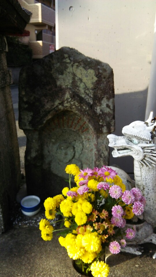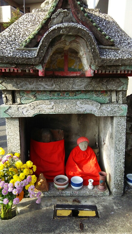 別府校を出て150メートル程西に進んだ交差点の隅に祀られた「お大師」様です。