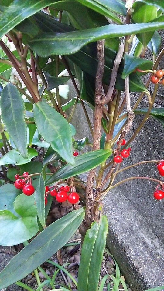 母が植えたものですが、センリョウ・マンリョウ・ヒャクリョウ・ジュウリョウと色々あってどれがどれやら?…