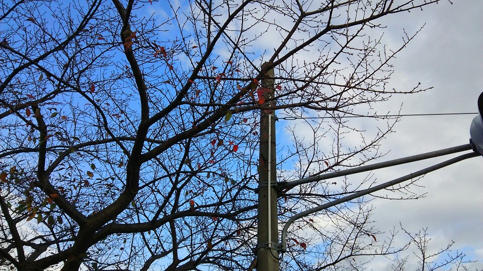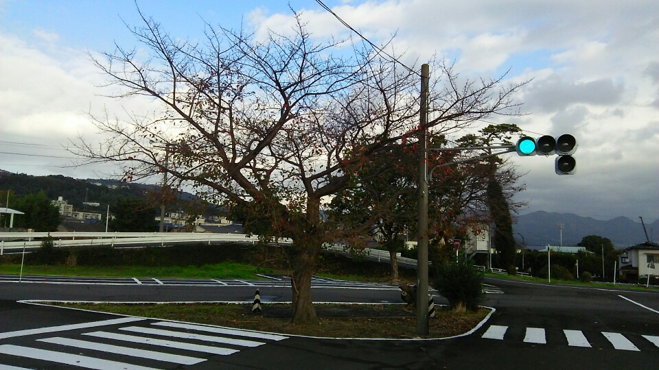 信号交差点の桜、葉が残り少なくなりました。