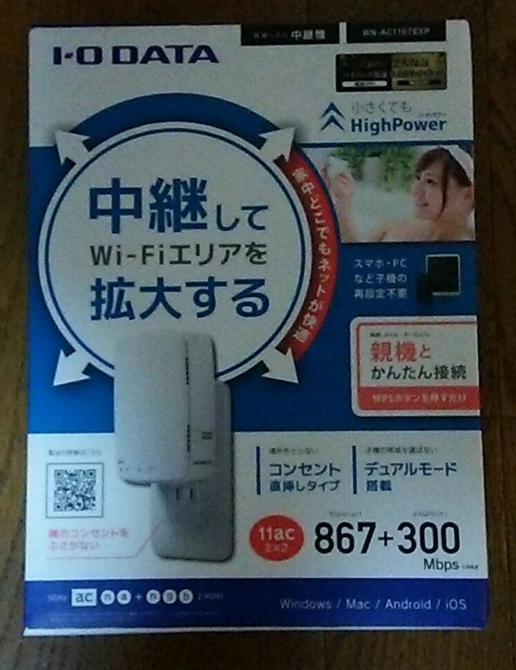 ヤマダ電機に行ってみたら、中継器が手頃な価格でたくさん並んでいましたので、設定が一番簡単そうなものを選んでみました。