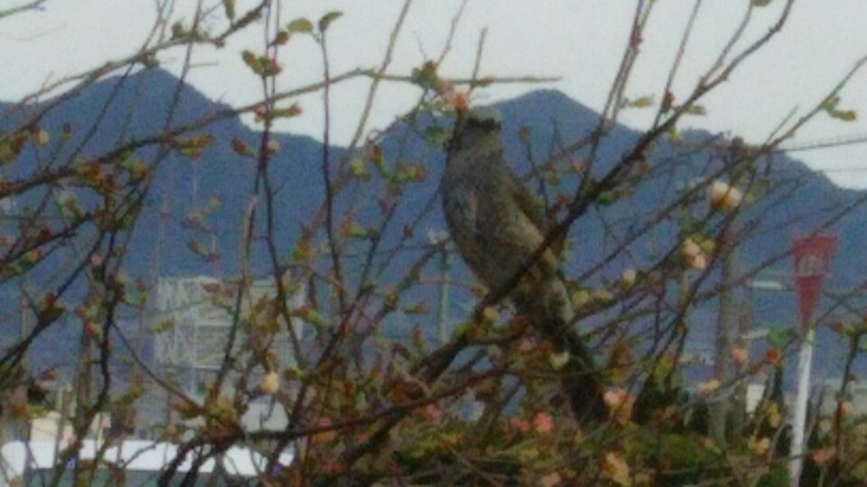 13番S字コースのボケの木にやって来たヒヨドリです。