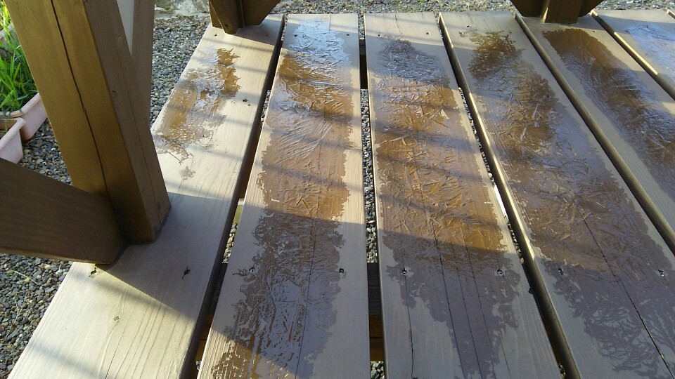 ウッドデッキが凍っていました。
