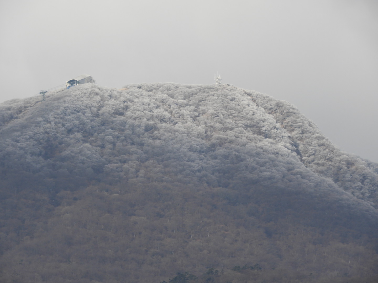 今朝の鶴見岳です。昨日までは霧氷が見えなかったけど、一日でこの変化です。暖かい日と寒い日が数日おきに繰り返しています。