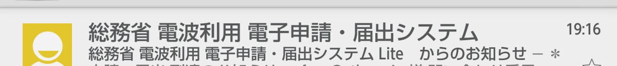 アマチュア無線局免許の更新を電子申請で行いました。受付完了メールも届いたので申請料の納付書を待つだけです。