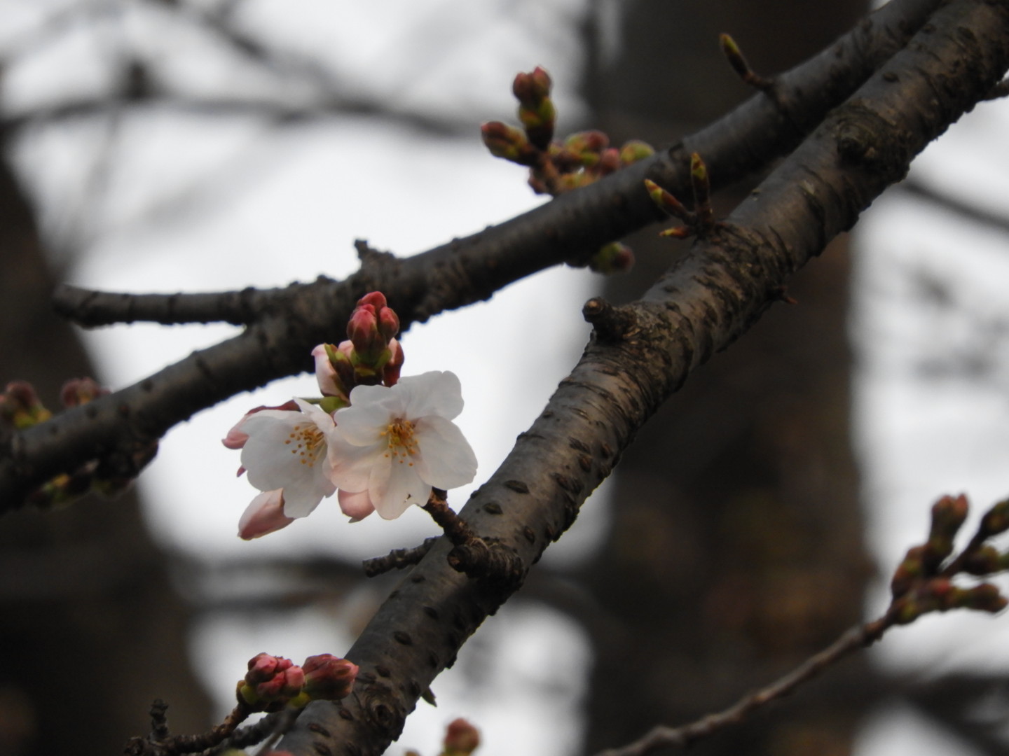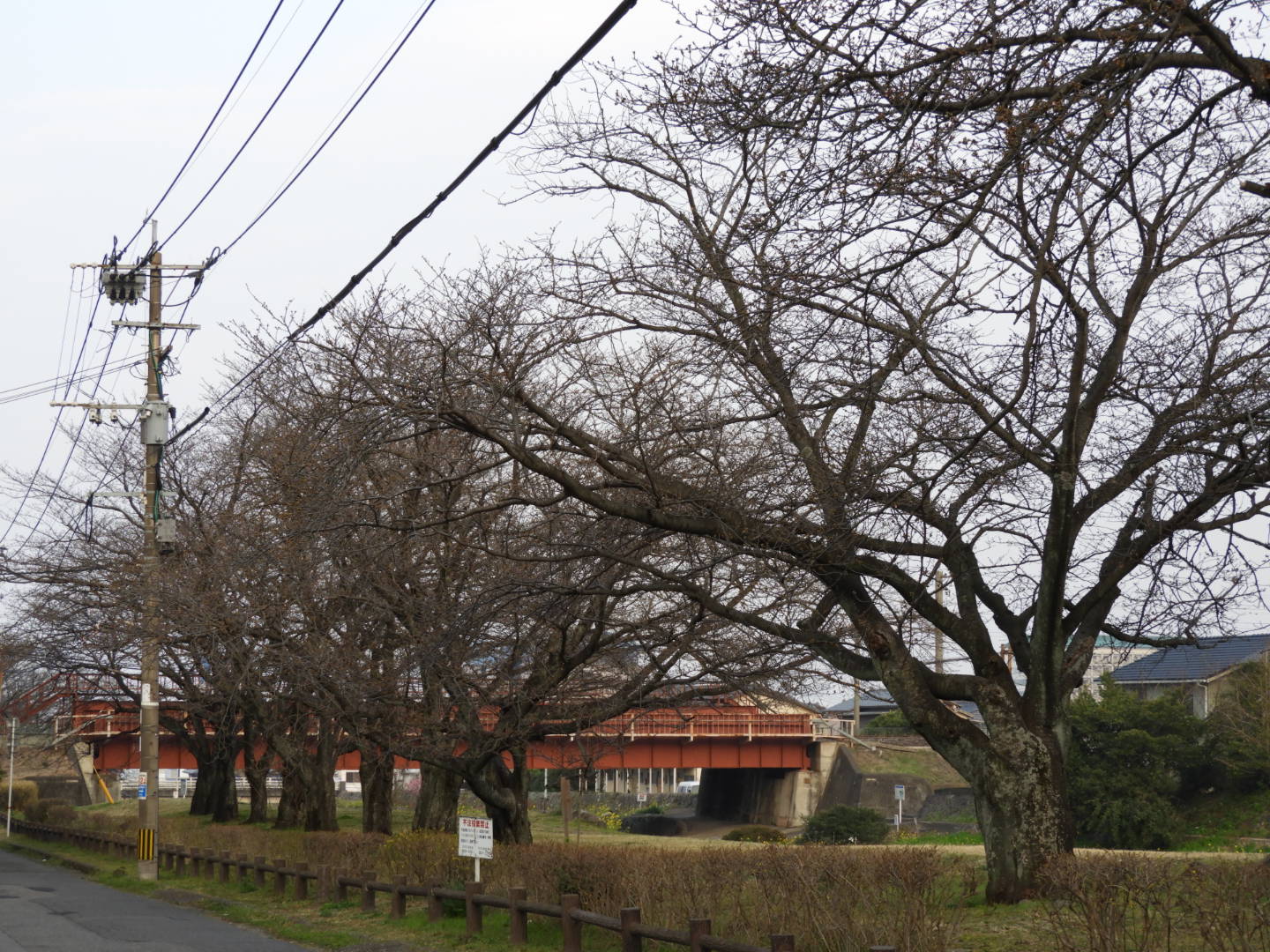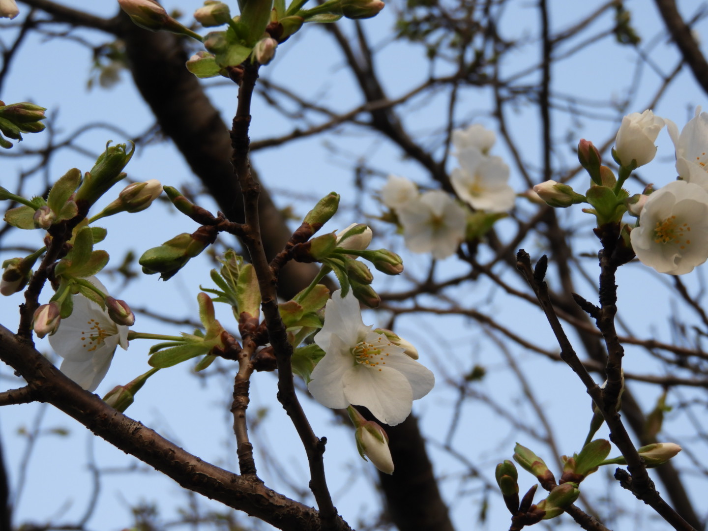 今年は開花が遅れて3月中は無理だという話も出ていましたが‥・今日、午後の路上教習中に境川の桜並木で発見しました。桜並木はまだこんな感じですが、よく見るとポツポツと花が咲いた枝があります。川の上には既に鯉のぼりmが泳いでいてゴールデンウィークの準備は整っています。