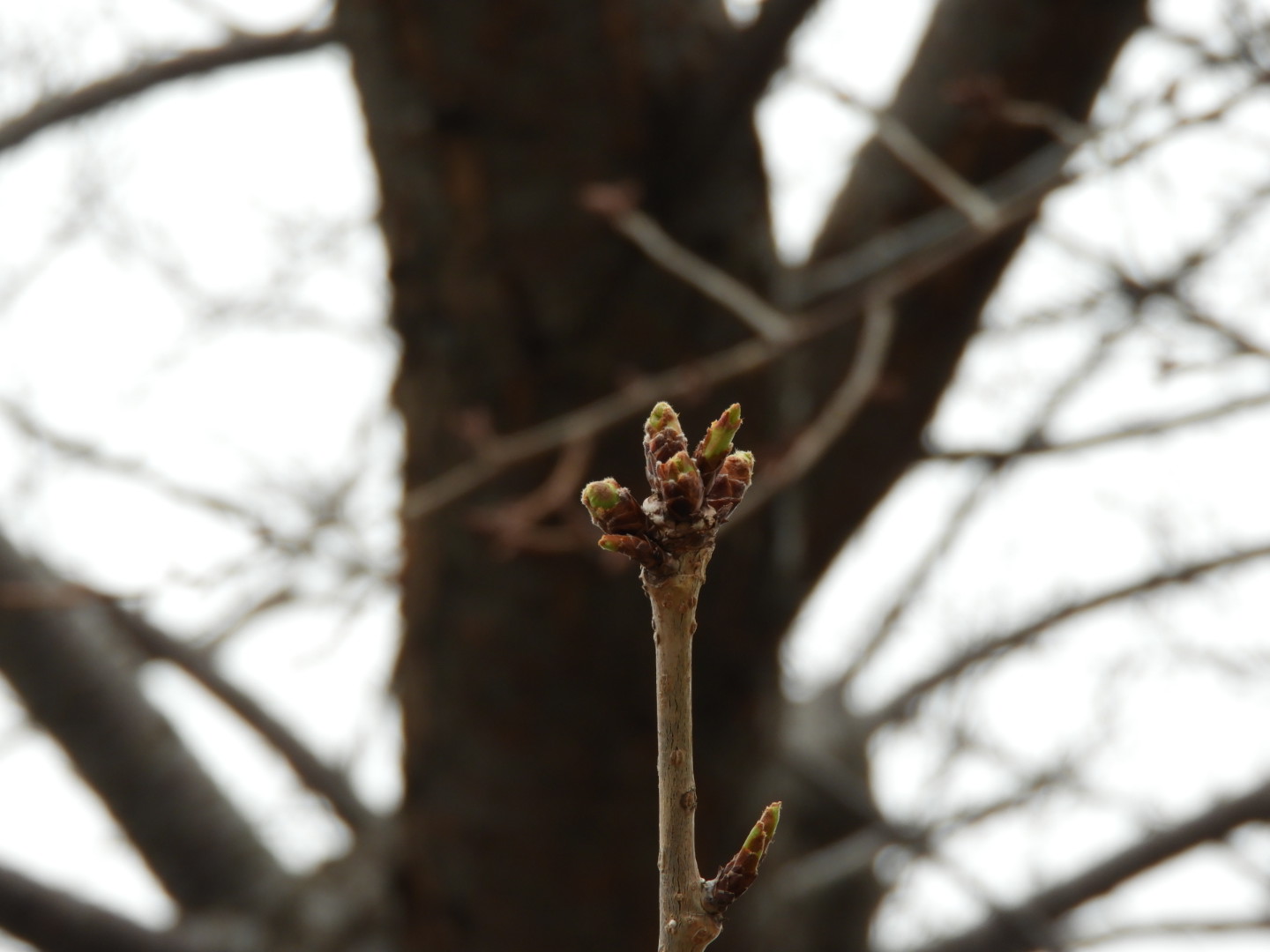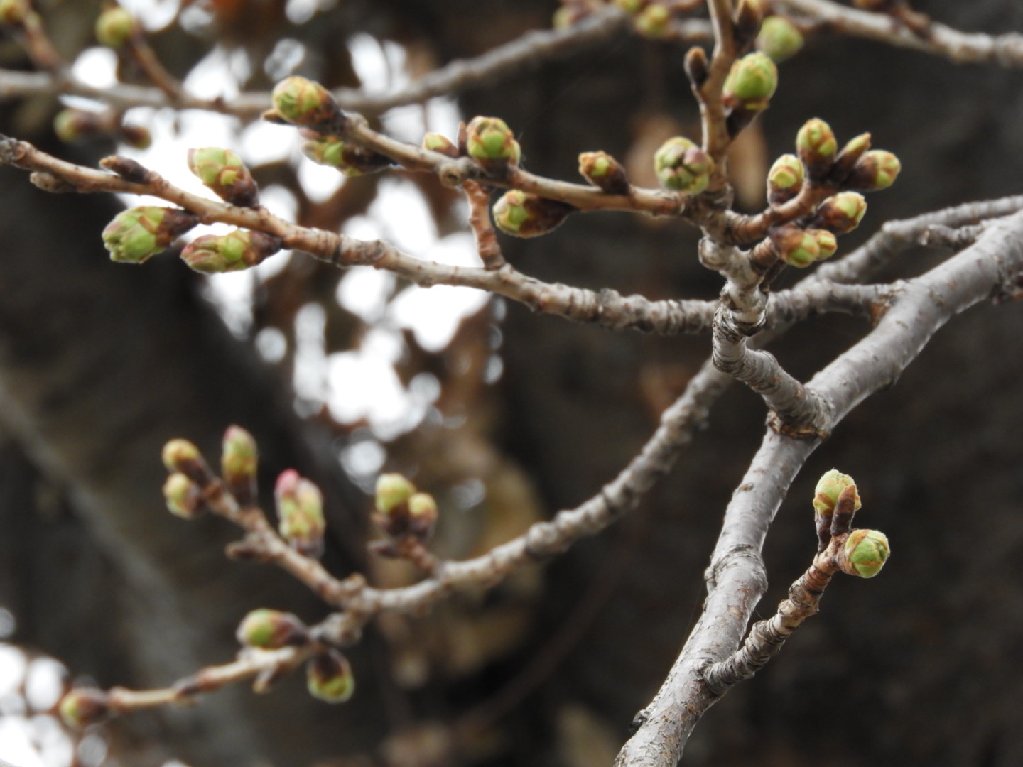 信号交差点の桜はまだまだのようです。この桜の方が開花時期が早い種類なのですが‥・