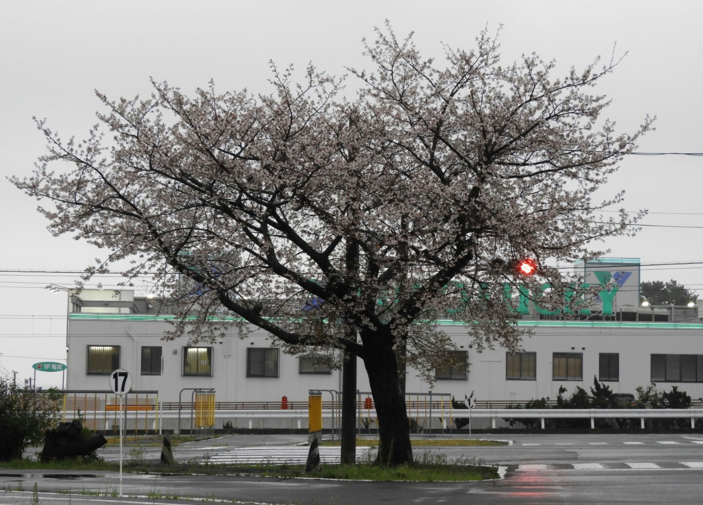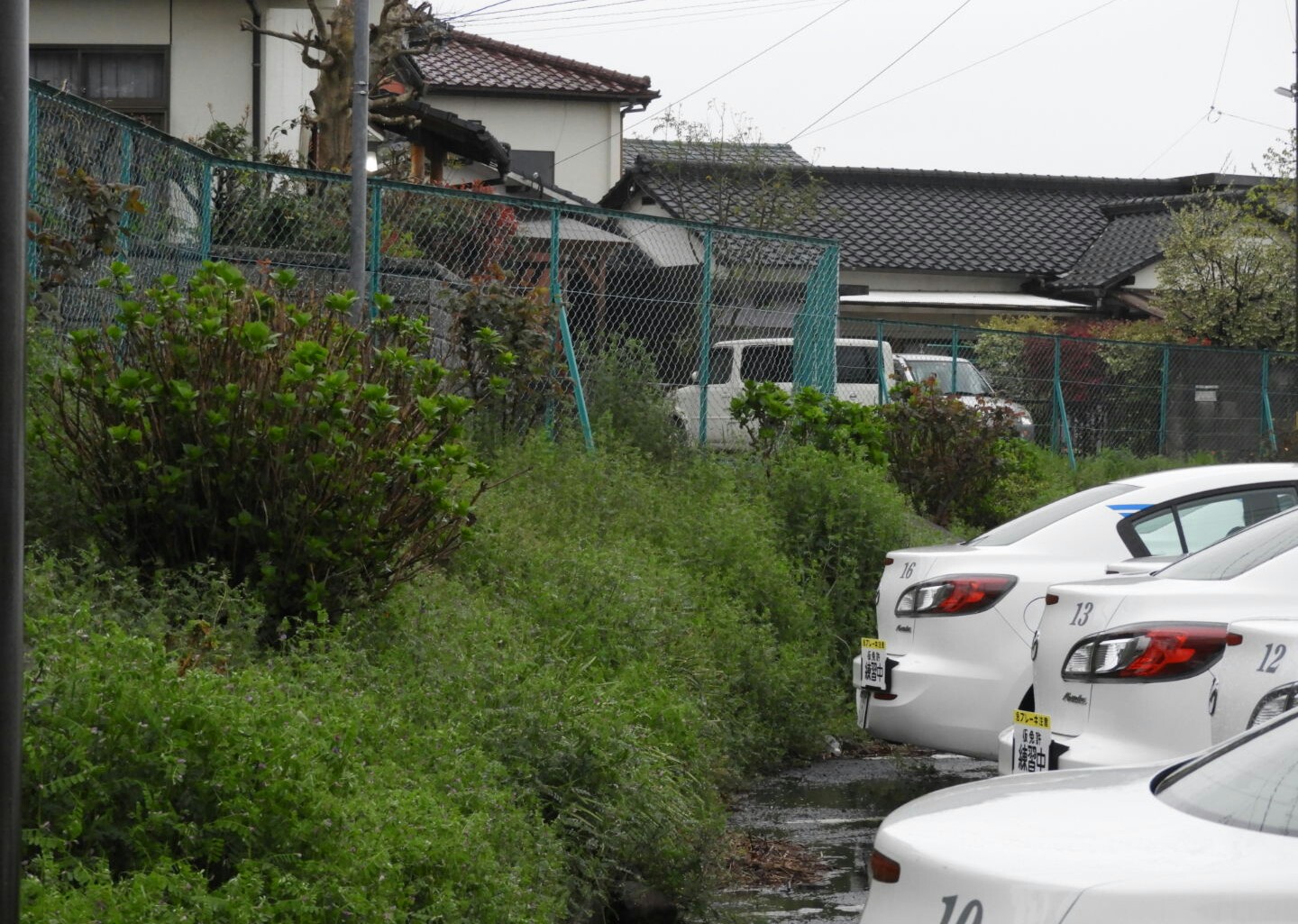 菜の花が満開になる頃に続く雨を「菜種梅雨」と呼ぶそうです。たっぷり水を含んだ場内コース西側の土手にはカラスのエンドウが生い茂っています。信号交差点の桜も満開になりましたが、このようなお天気では散ってしまいそうです。路上も霧が濃くなって視界が低下しています。