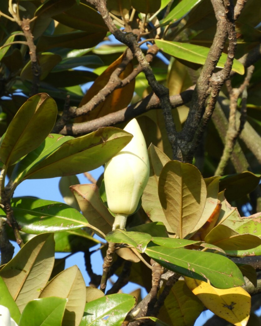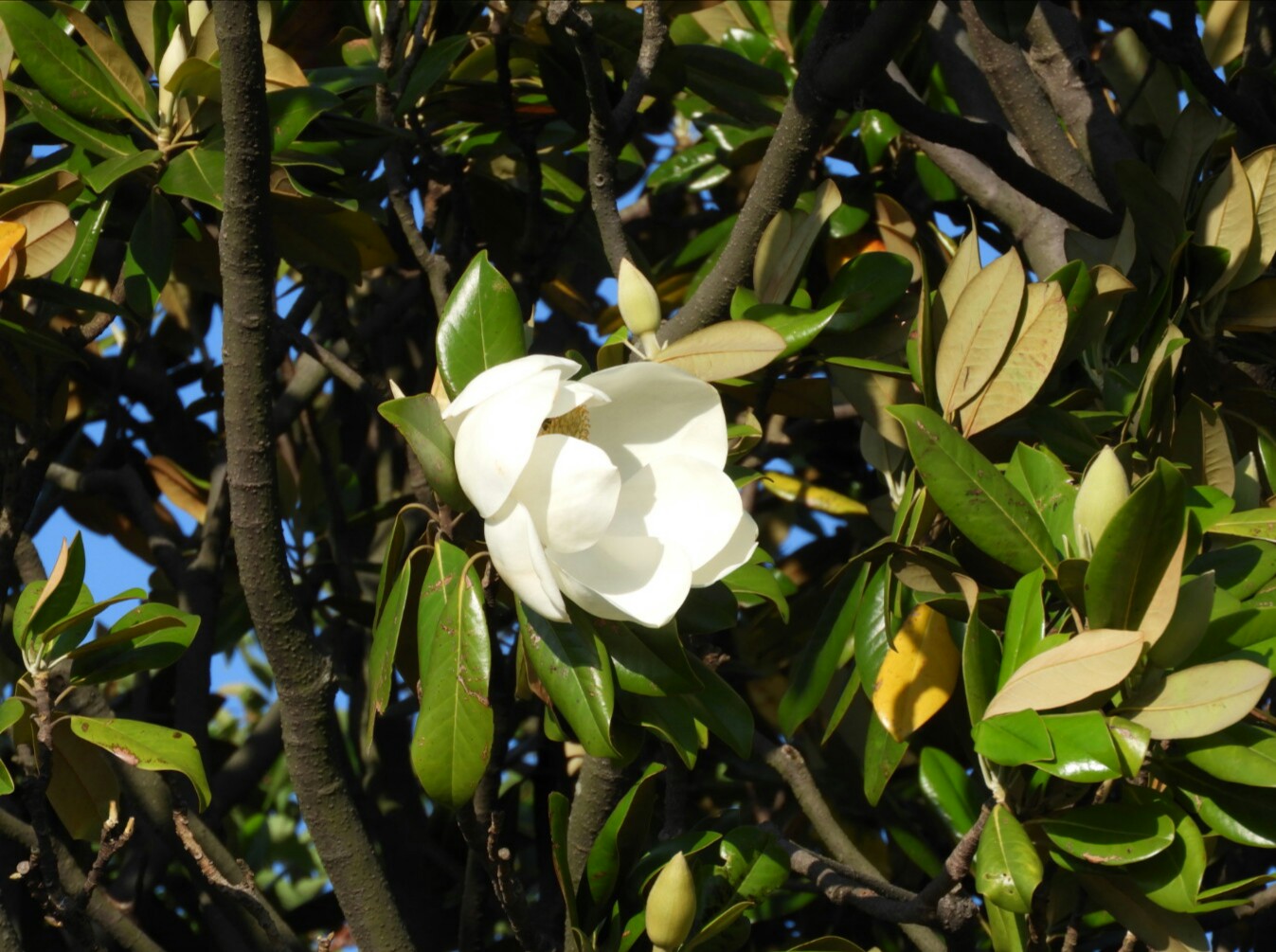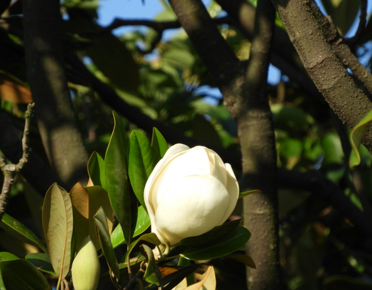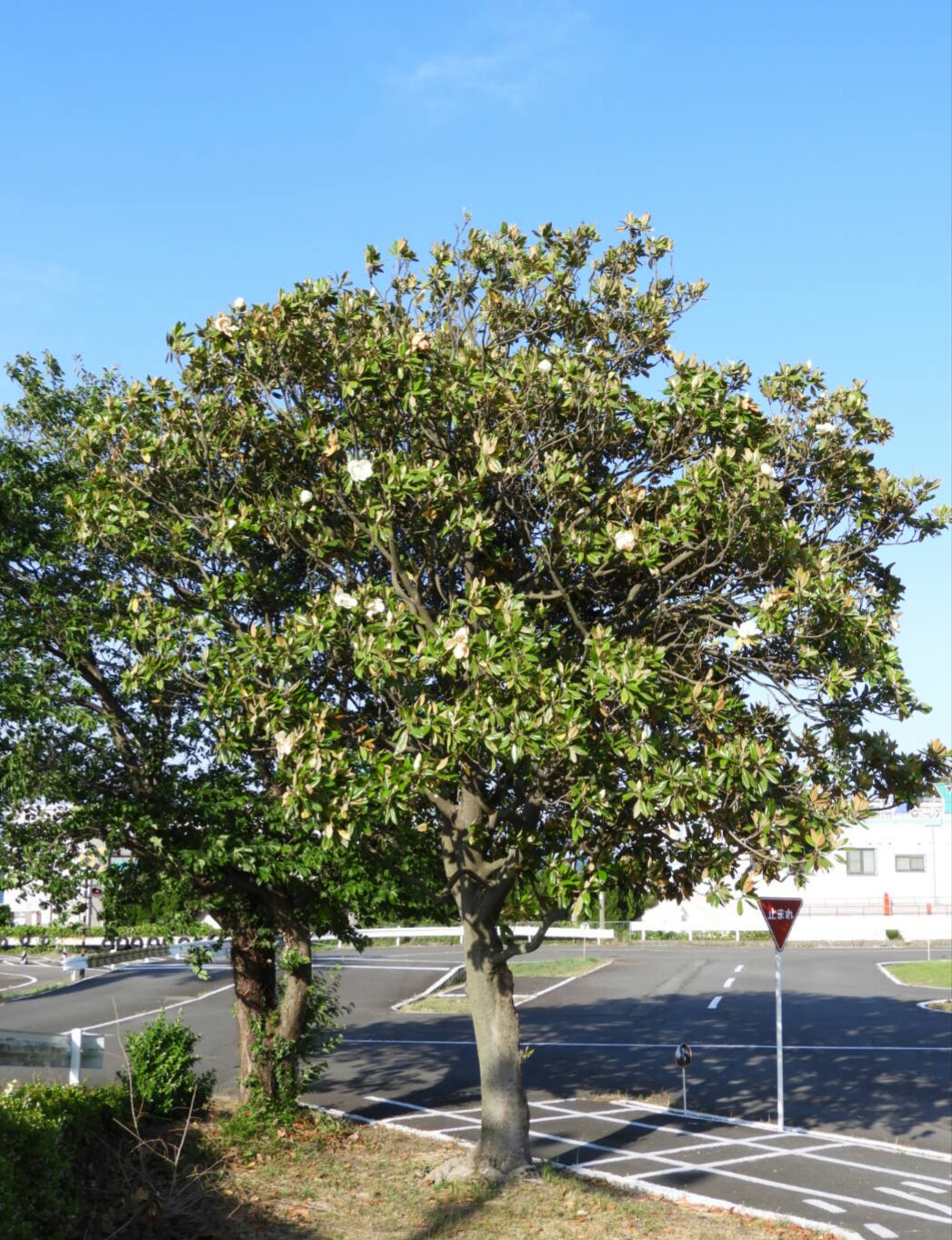 別府校場内コースの坂道近くにタイサンボクが植えられています。そのタイサンボクに白い花が咲いています。蕾の形が連下座に立つお釈迦様のように見えることから、お寺の境内によく植えられているそうです。別府校の近くでは別府市美術館(今は閉鎖されています)の敷地でもです見ることが出来ます。