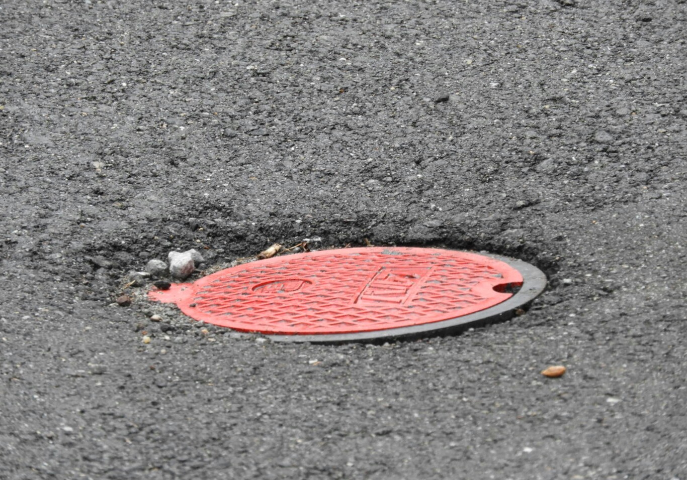 写真は自宅前道路に埋設された温泉給湯配管のバルブの蓋です。この近くでトラブルがあったようで、駐車場前や石垣の前に赤い丸印が付けられコーンも立っています。我が家の温泉は正常にお湯が出たけど‥・