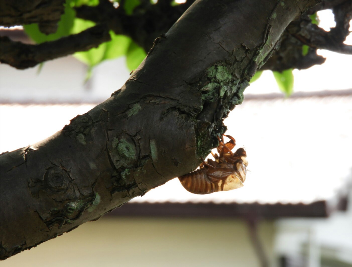 窓から蝉の鳴き声がテレビの音をかき消すほど大きく聞こえてきます。庭の梅の木に近づいてみると、脱皮してからあまり時間が経っていないアブラゼミがいました。写真を撮ろうとしたら飛んで逃げようとしましたが、うまく飛べずに落ちてしまいました。アリに食われないよう枝に置いてやったのですが、大丈夫だったかな?