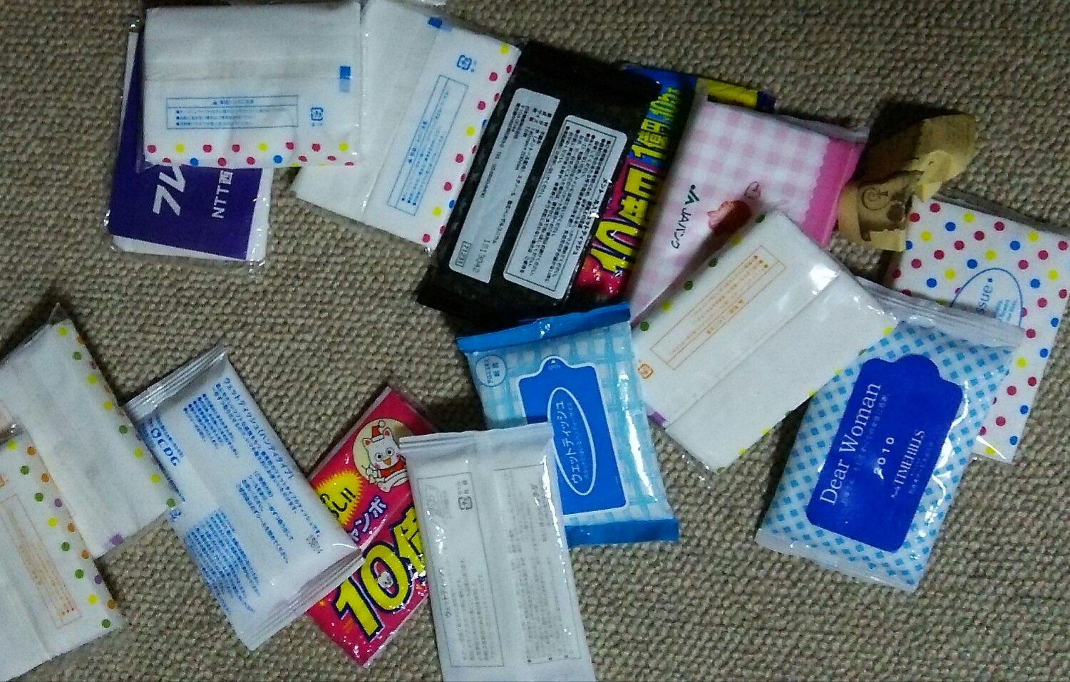 街に出掛けた時は、積極的にポケットティッシュを集めています。