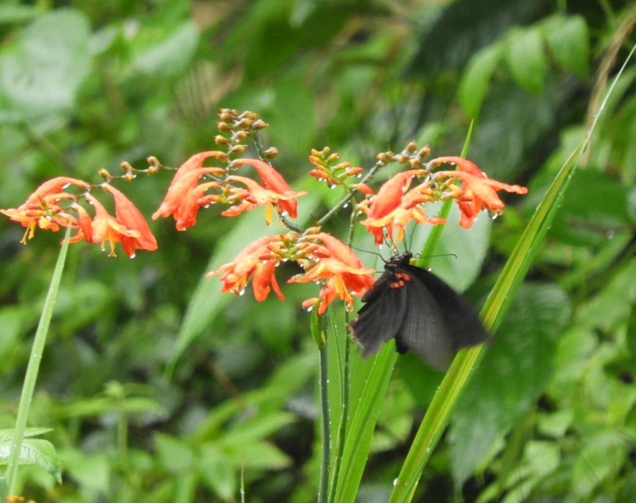 ヒオウギスイセンとアゲハ