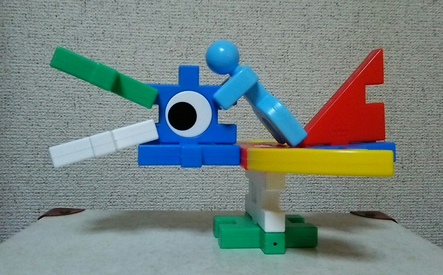 私の誕生日が近いということで、お孫ちゃんが顔を見せにやって来ました。お孫ちゃんが遊びに来ても退屈しないよう、ブロックの玩具を用意しています。そのブロックでお孫ちゃんのお父ちゃんが芸術作品を作りました。