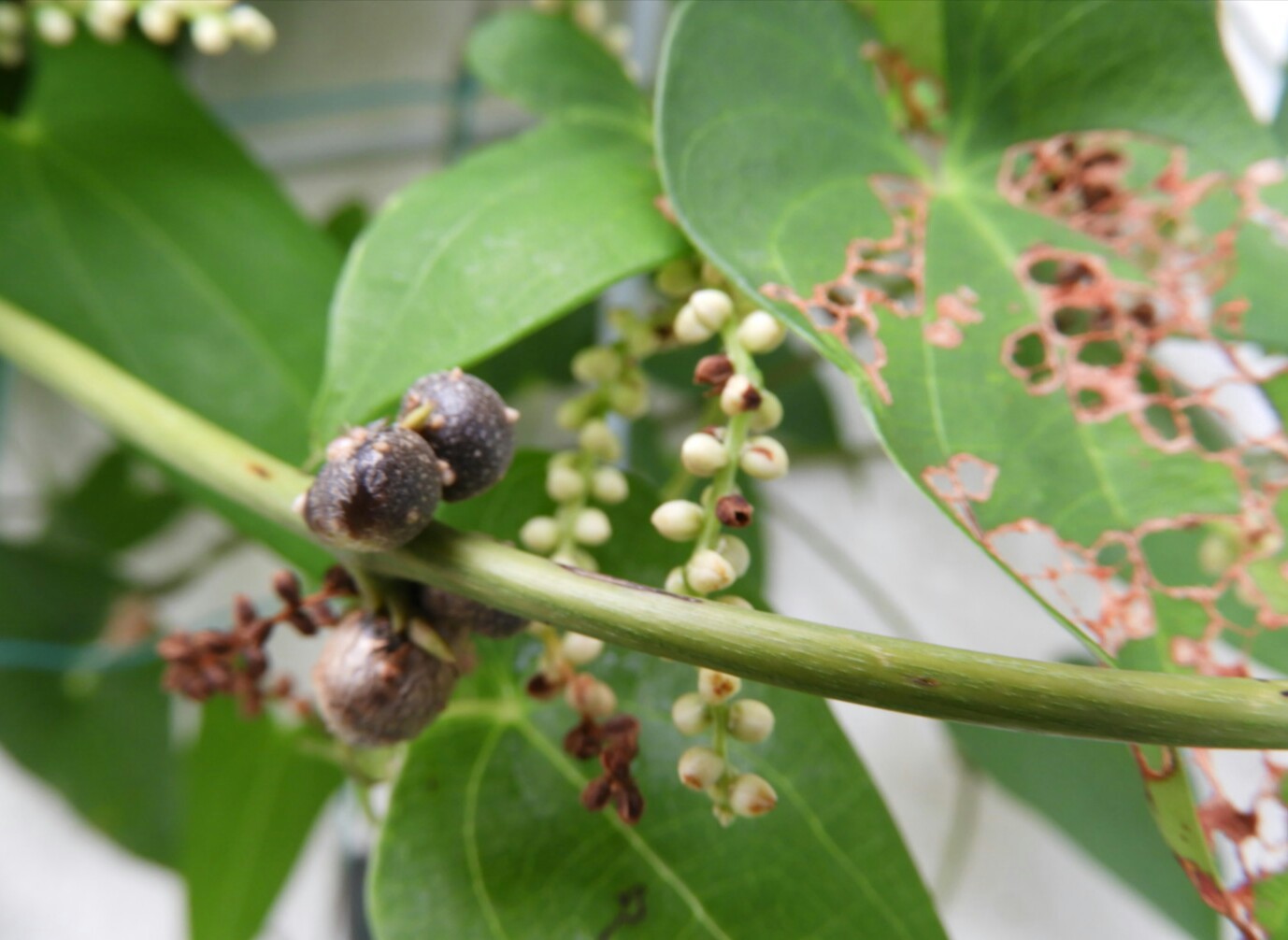 待合室入口横のネットに伸びた山芋の蔓にムカゴが‥・秋が着実に近づいていますね。