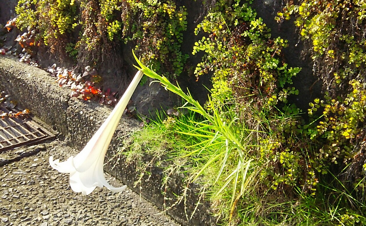 昨日、開花したタカサゴユリです。今日、見たら風で茎が折れていました。台風の直撃は免れたので、これくらいは仕方ないですね。