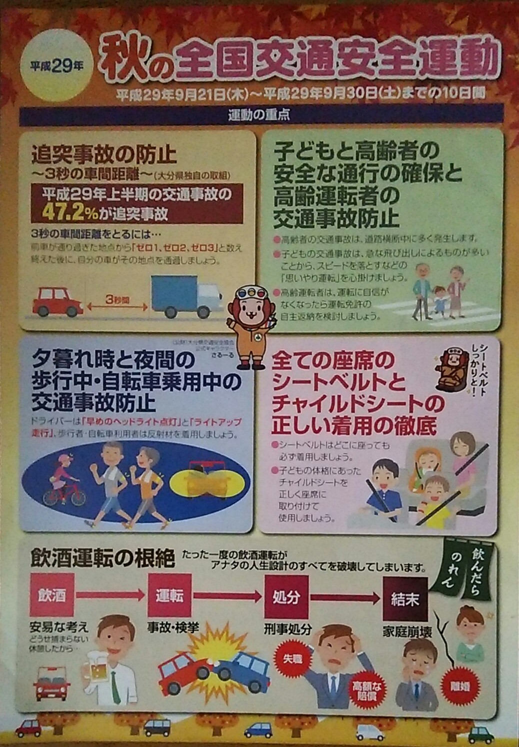 秋の全国交通安全運動が始まりました。