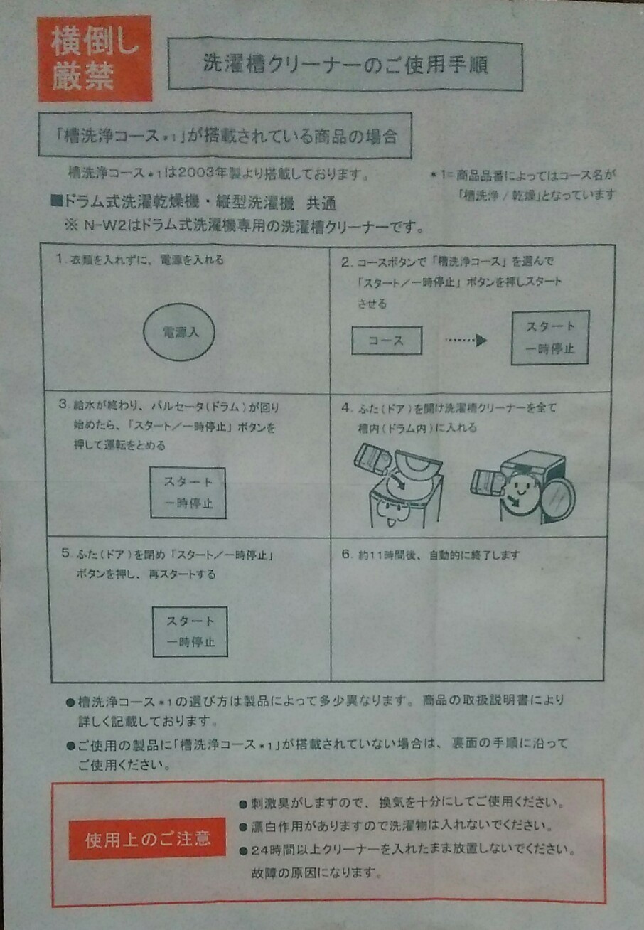 洗濯機のクリーニングをやってみようと思い、洗濯機の製造メーカー純正の洗濯槽クリーナーを取り寄せて見ました。マニュアルに従って「槽洗浄コース」をスタートしたら、何と11時間と表示されました。