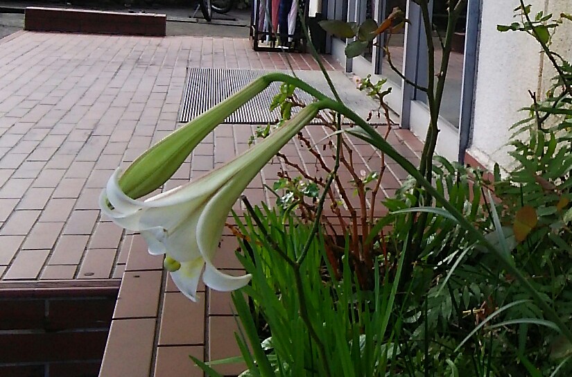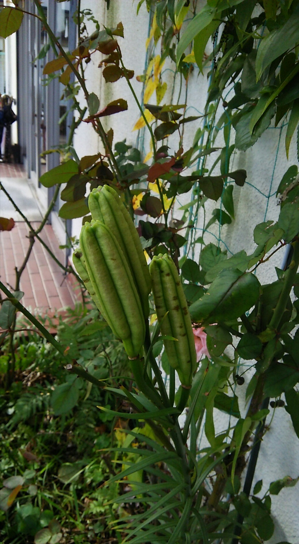 1株は花が咲き、もう1株は種が出来ています。気候の変化が目まぐるしくて、ユリも面食らっているようです。