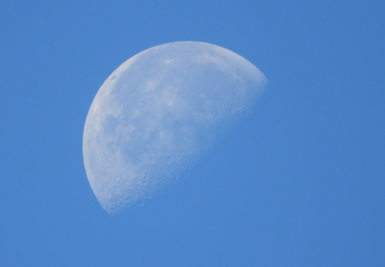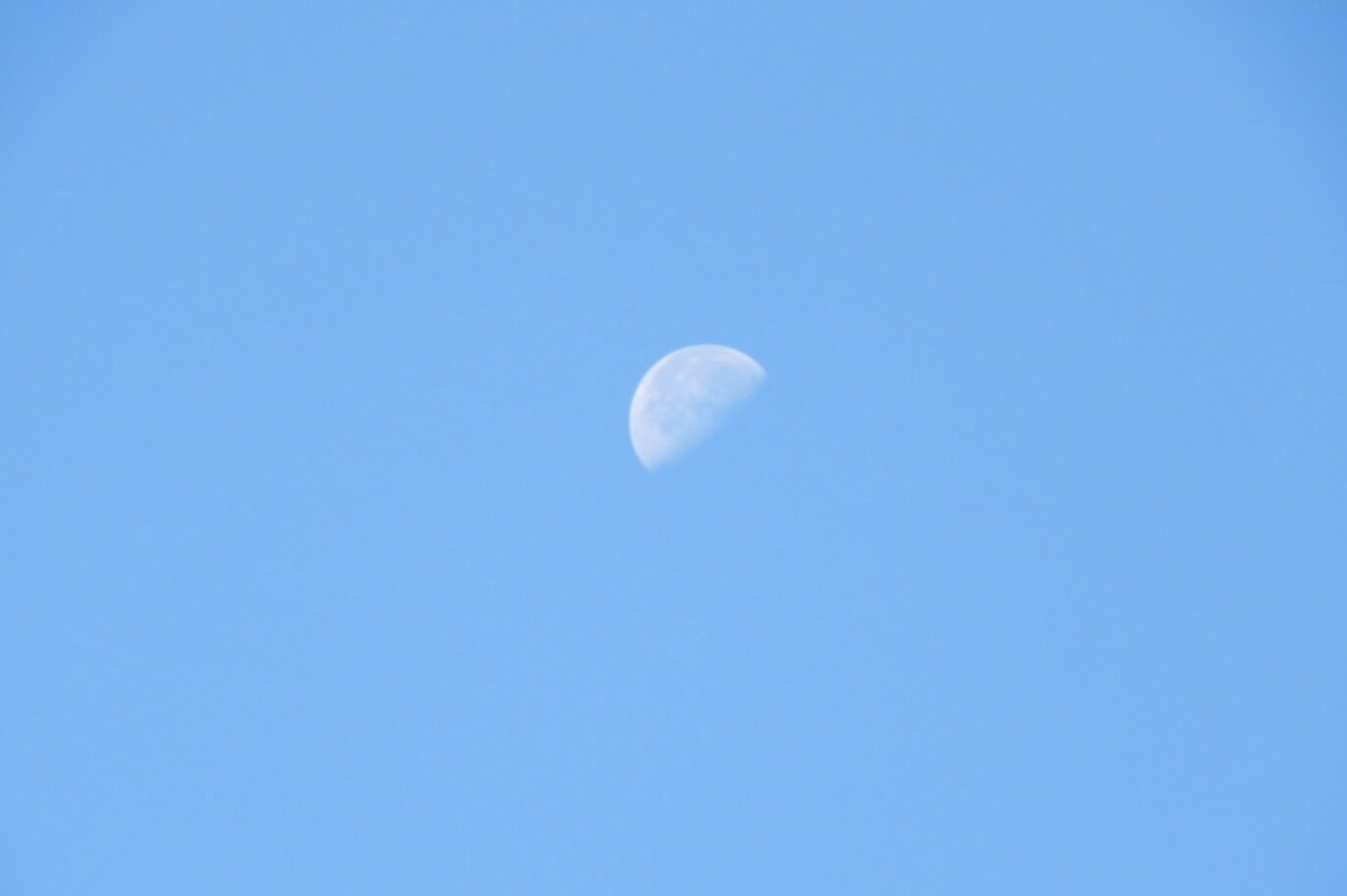明るい空に月が見えました。満月から月の出が遅くなり、月齢21日頃には月の入りが午前9時をまわります。