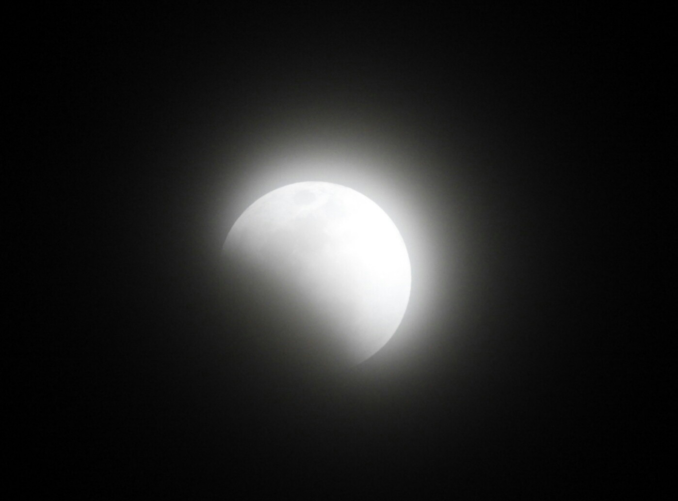 21時48分、ほぼ欠けて月が赤く見えています。露出不足ですがカメラの限界です。