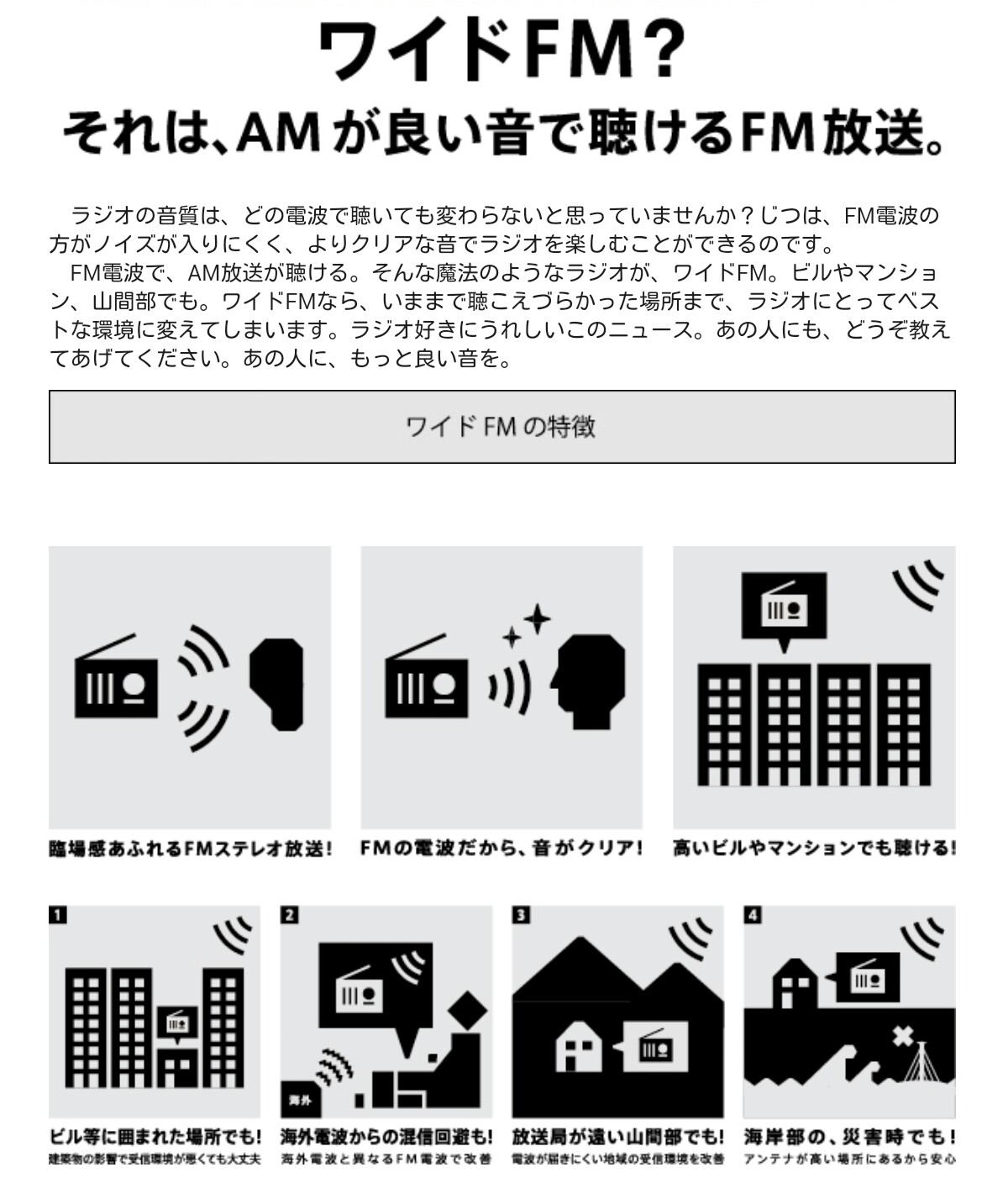 最近、車を買い換えました。新しい車のラジオはワイドFM対応になっています。