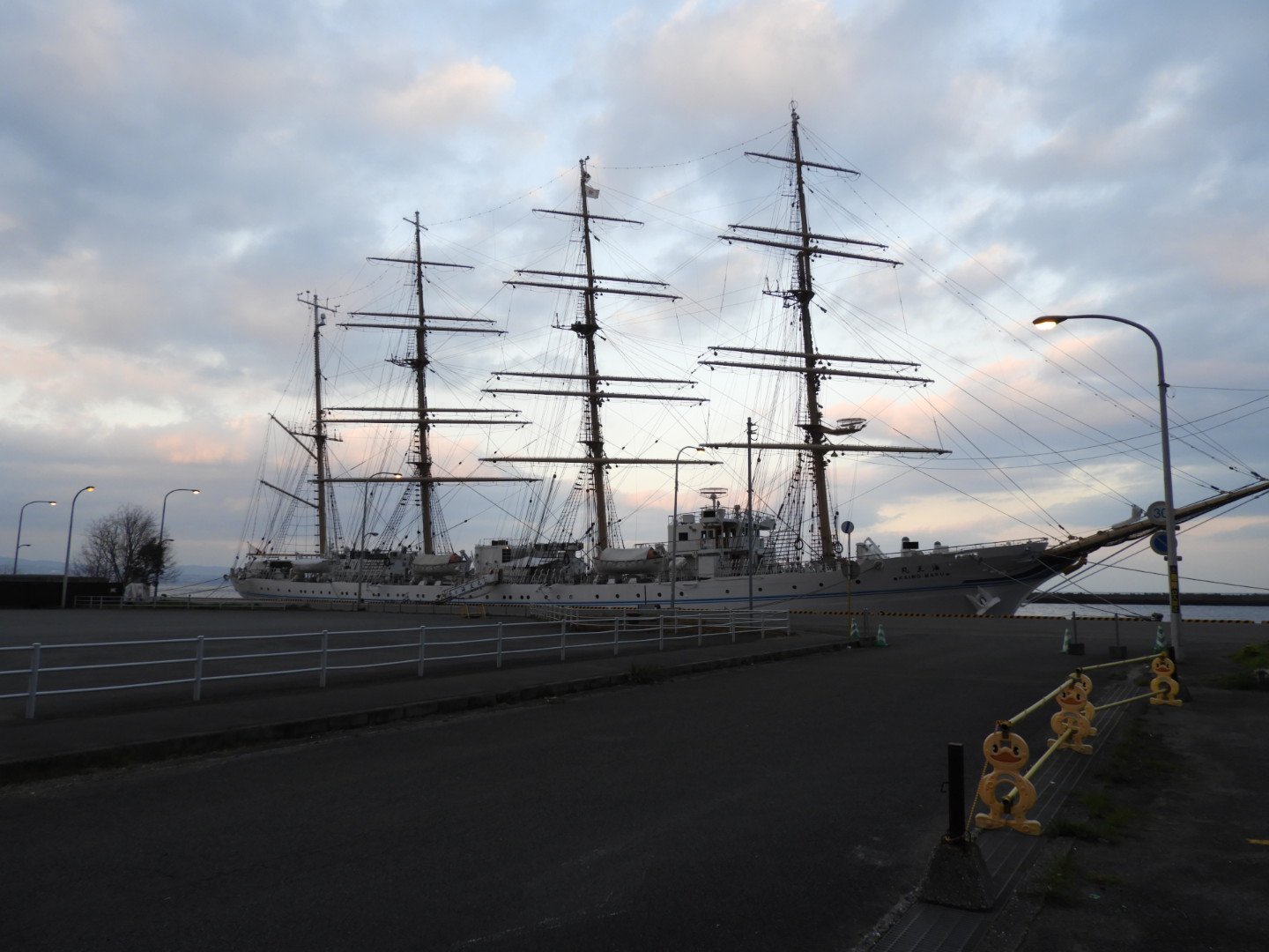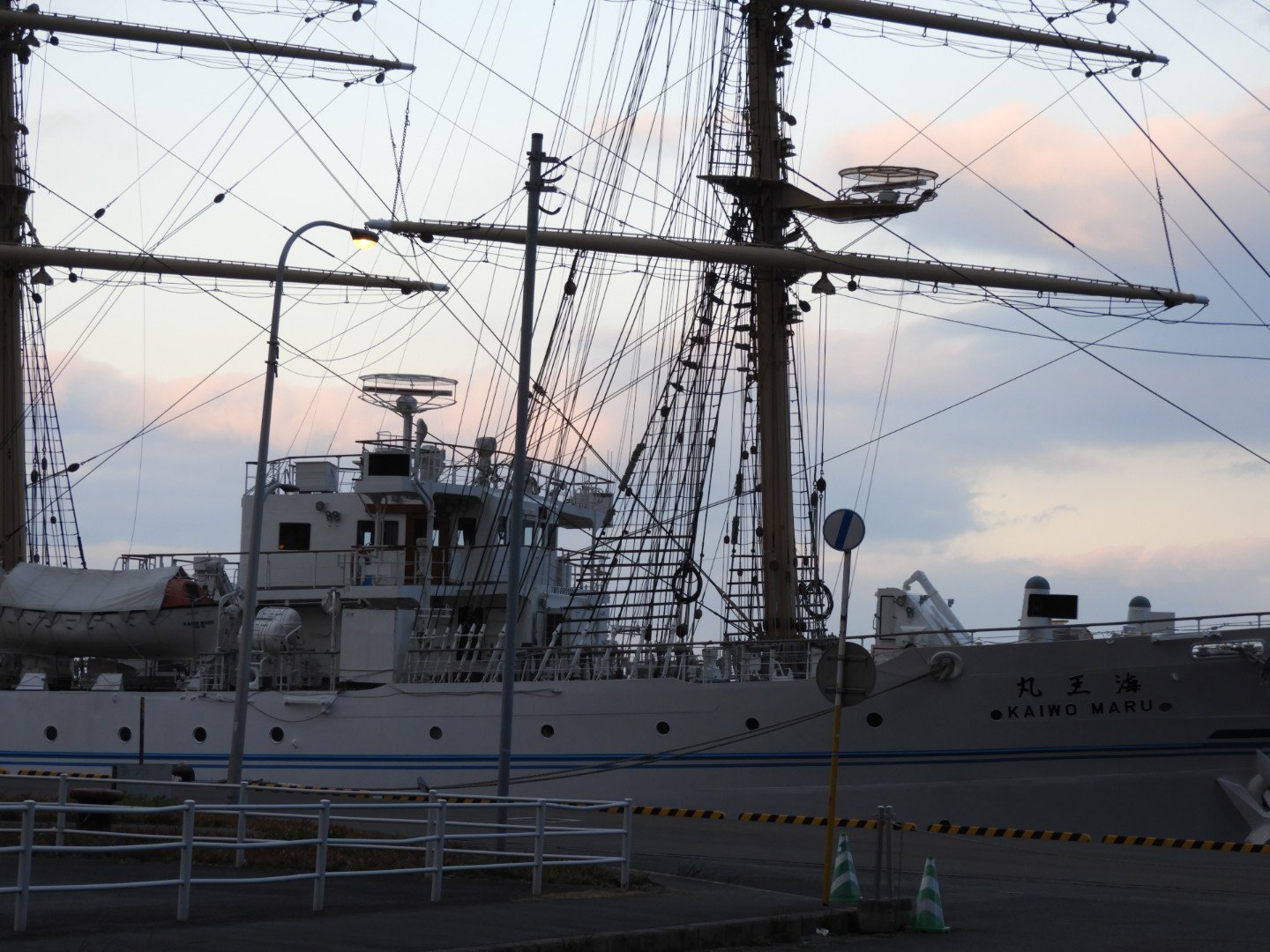 自動車学校は今が最繁忙期です。普段は高齢者講習専任の私も時々教習の助っ人に入っています。久しぶりに路上教習に出たら、観光港に停泊中の海王丸が見えました。場内コースのみで仕事をしていると、この風景が新鮮に見えます。