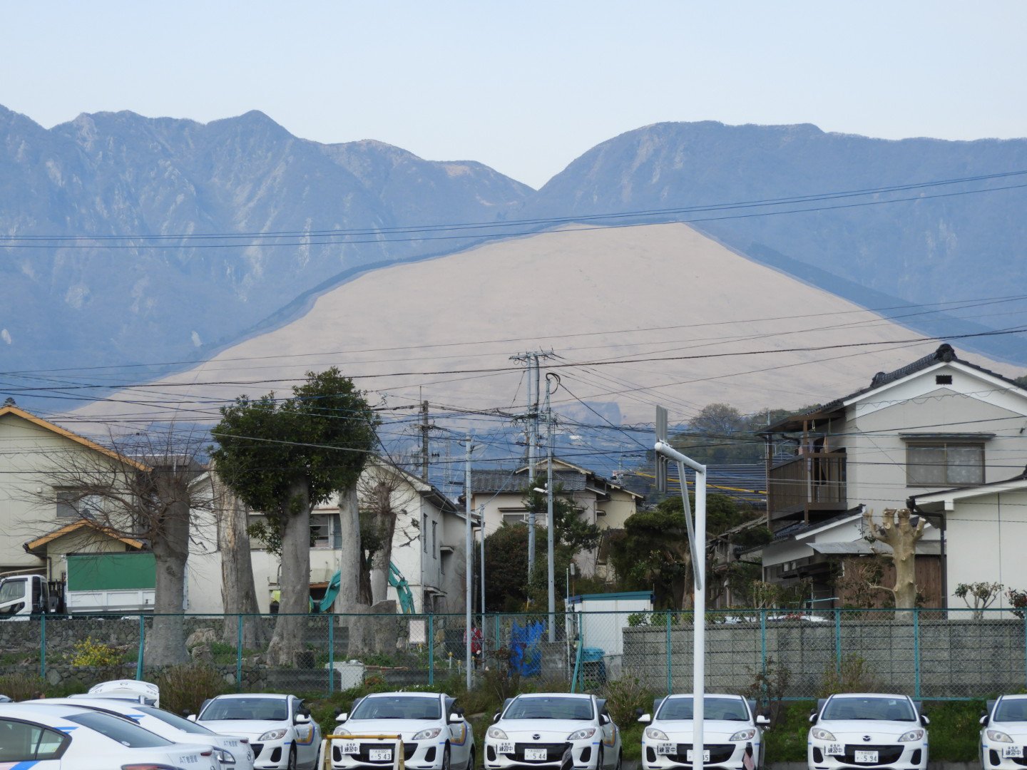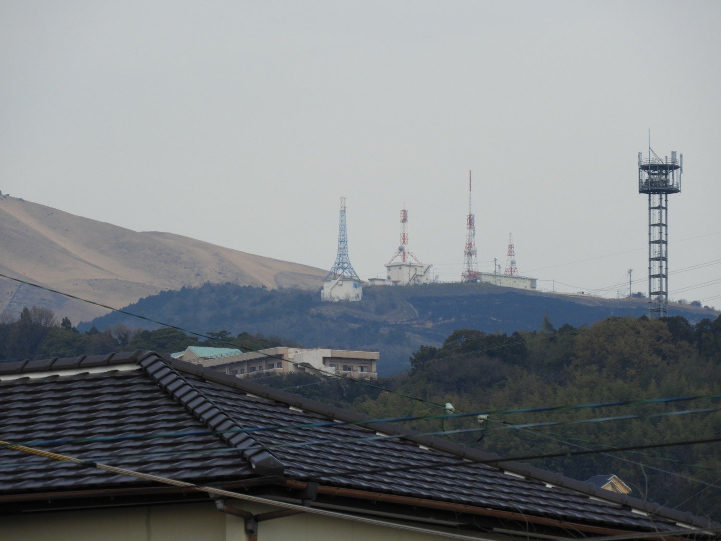 昨日、野焼きがあったようで十文字原テレビ塔付近の山肌が黒くなっています。