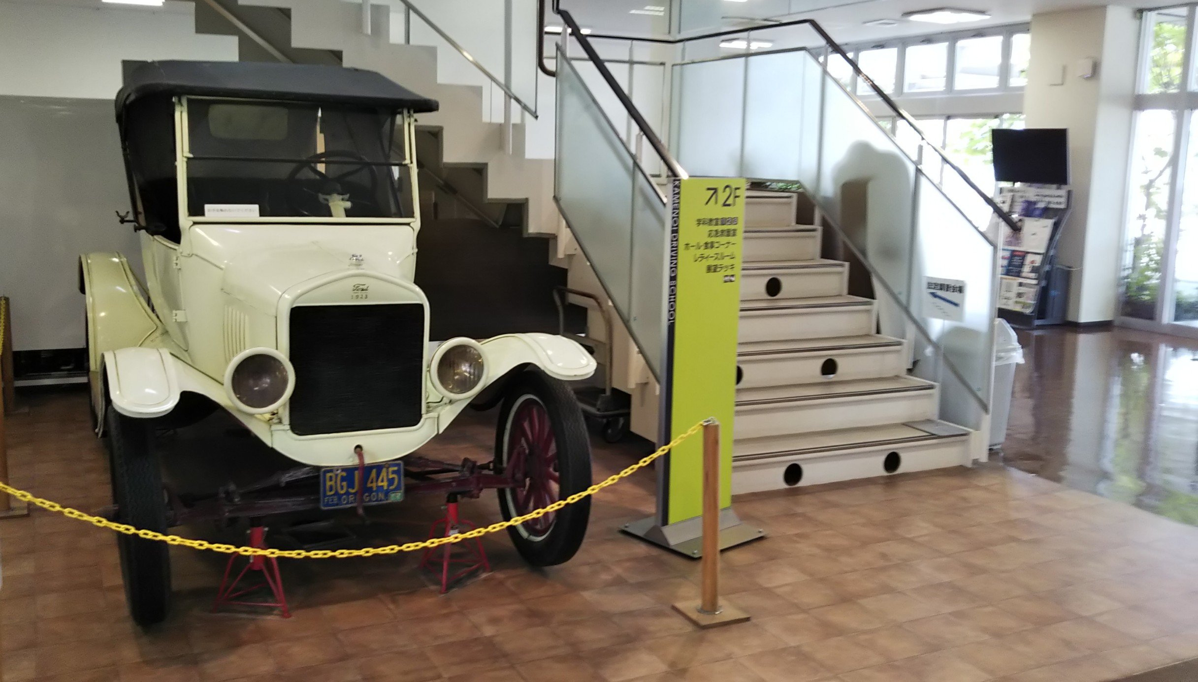 鶴崎校のロビーには「T型フォード」が展示されています。