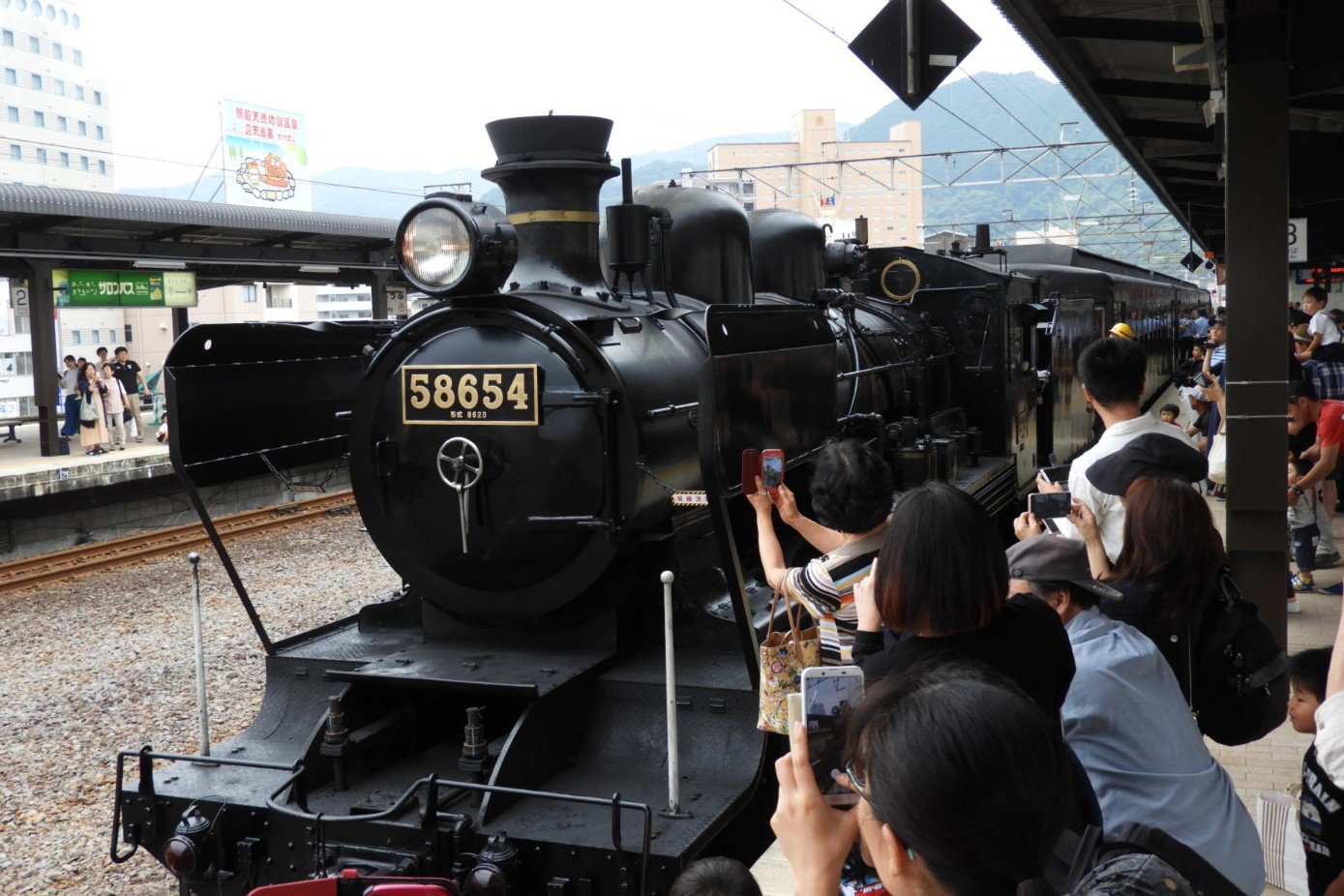 湯布院までは定時運行でしたが、別府到着は30分以上遅れました。恐らく写真を撮るためなのでしょう、線路 い近づく人が多くて徐行運転となったそうです。