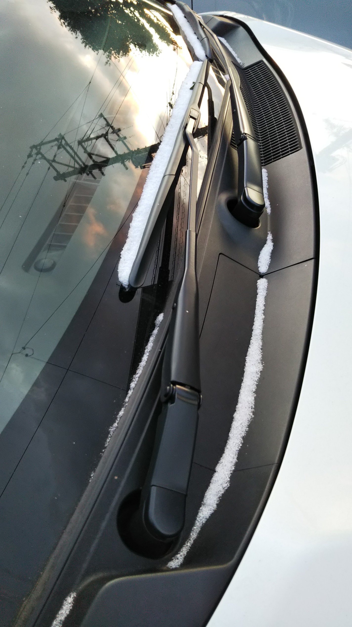 今シーズンに入って初めての雪、すなわち初雪です。 雪と言っても車のワイパーブレードにわずかに積もっただけです。 観測史上最も遅い初雪、大分では平年より74日も遅いとか・・・