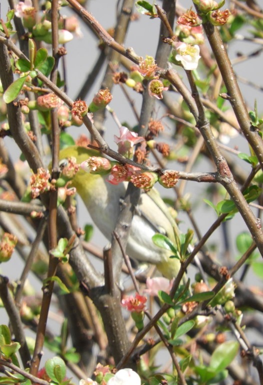13番S字コース内のボケの枝に来たメジロ