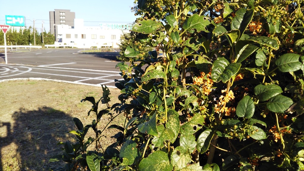 作業中に良い香りがするので気がつきました。 金木犀が満開です。 坂道や19番の交差点付近を通過するときに窓を開けていれば香りに気が付くかもしれません。 もっとも、教習生はそれどころではないかも・・・