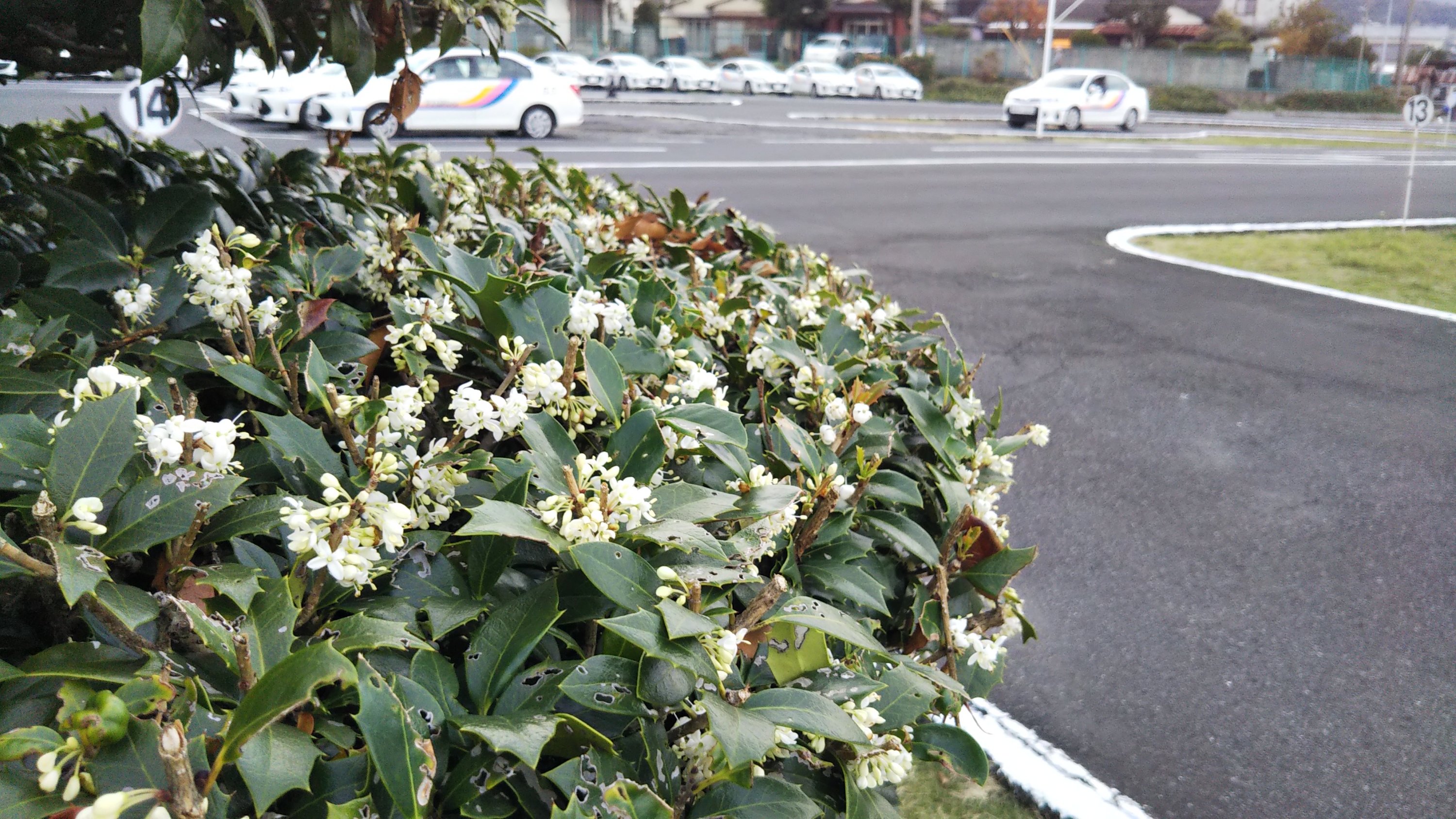 13番S字コース横の柊の花が満開です。