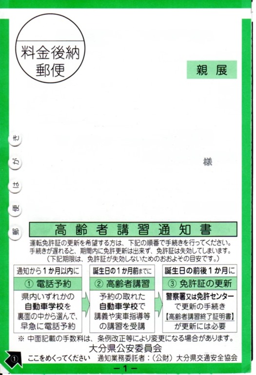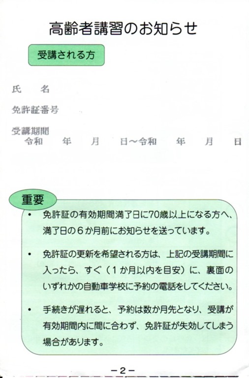 ついに私にも高齢者講習の通知書が届きました。